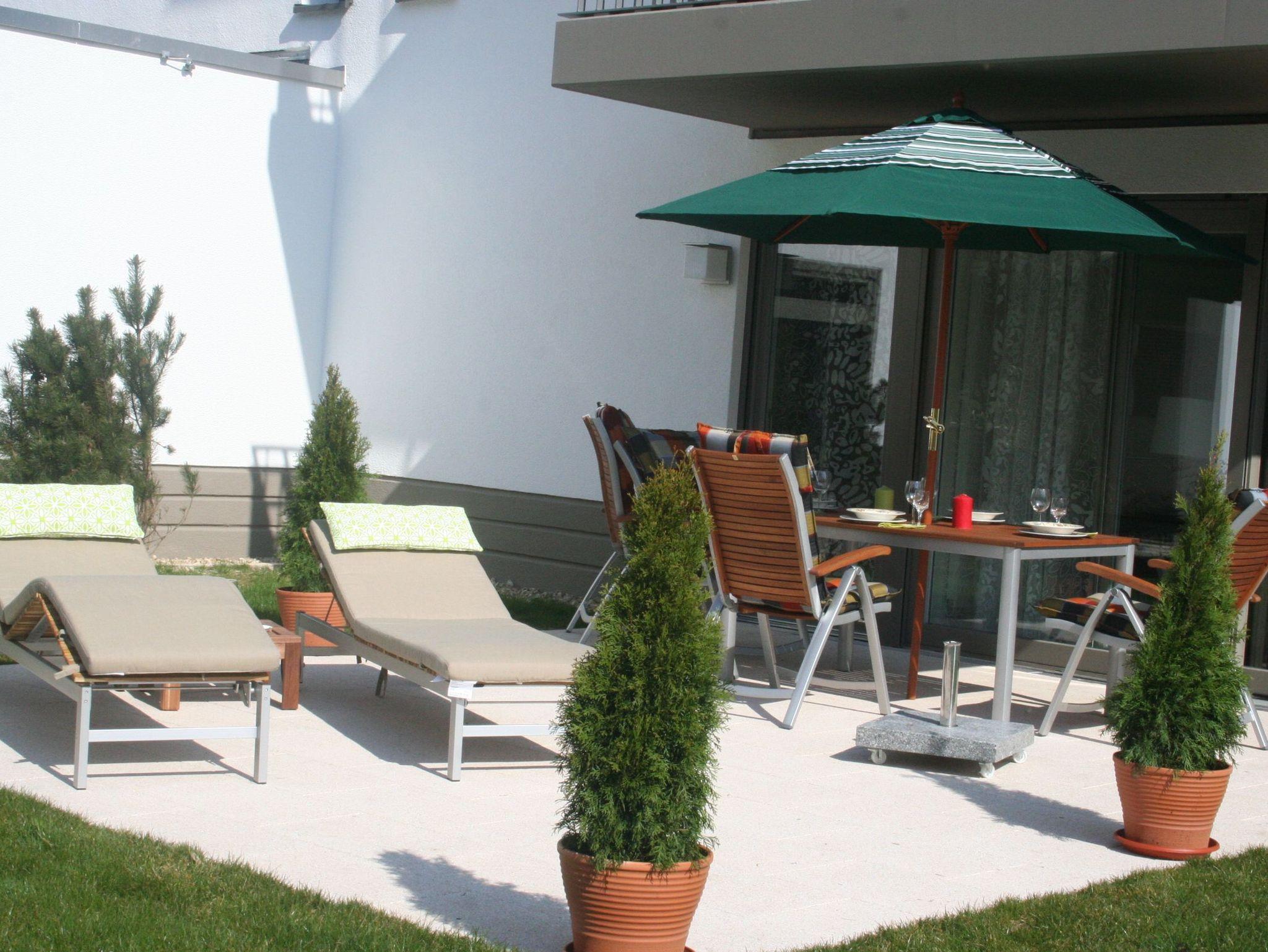 Die Ferienwohnung ist sehr hochwertig eingerichtet und bietet eine sehr große Terrasse und einen privaten Gartenanteil sowie einen herrlichen Blick in den Kurpark. Sie wohnen strandnah und doch im Grünen. Die Terrasse ist saisonbedingt (Mai bis September) möbliert.