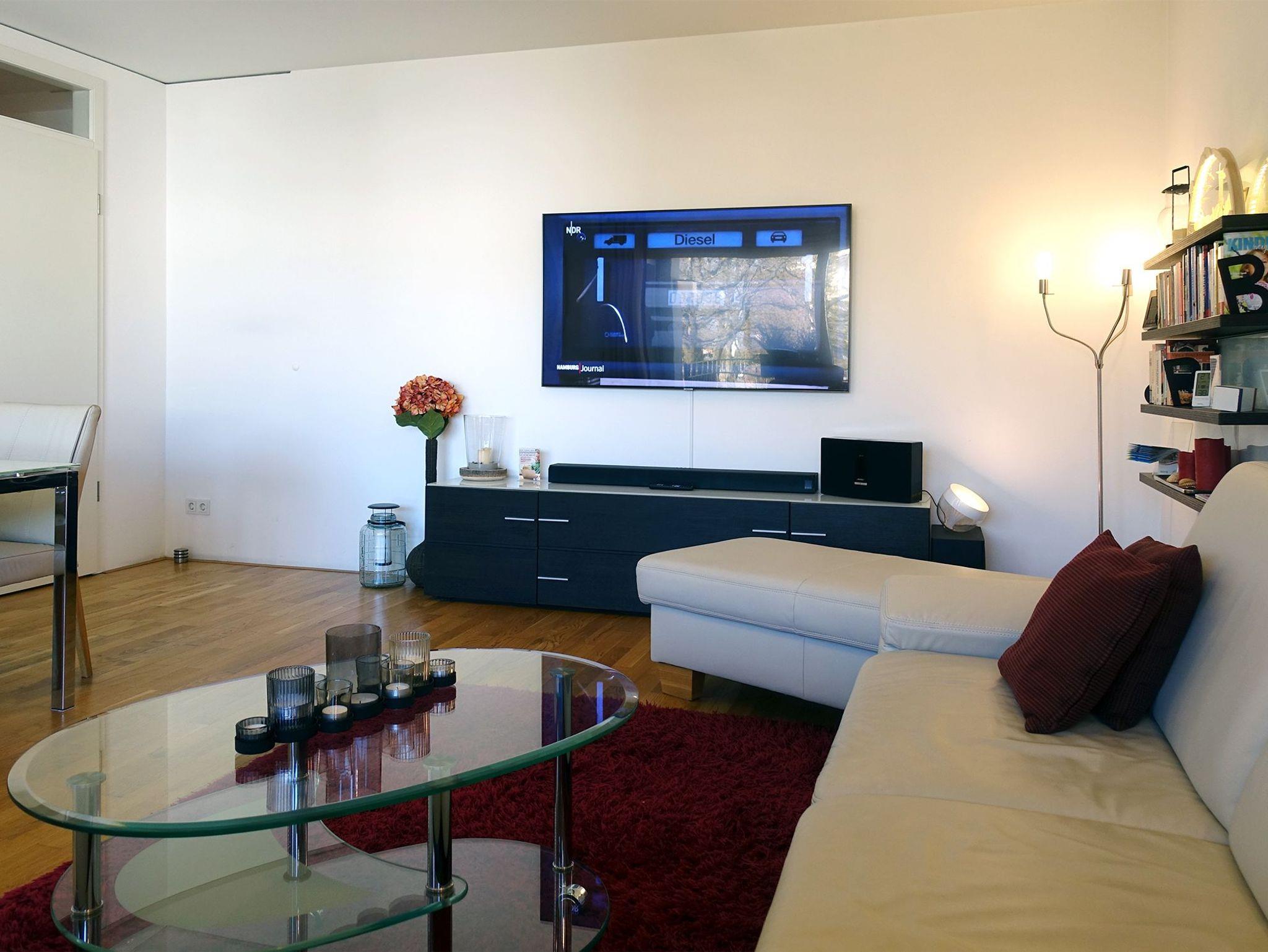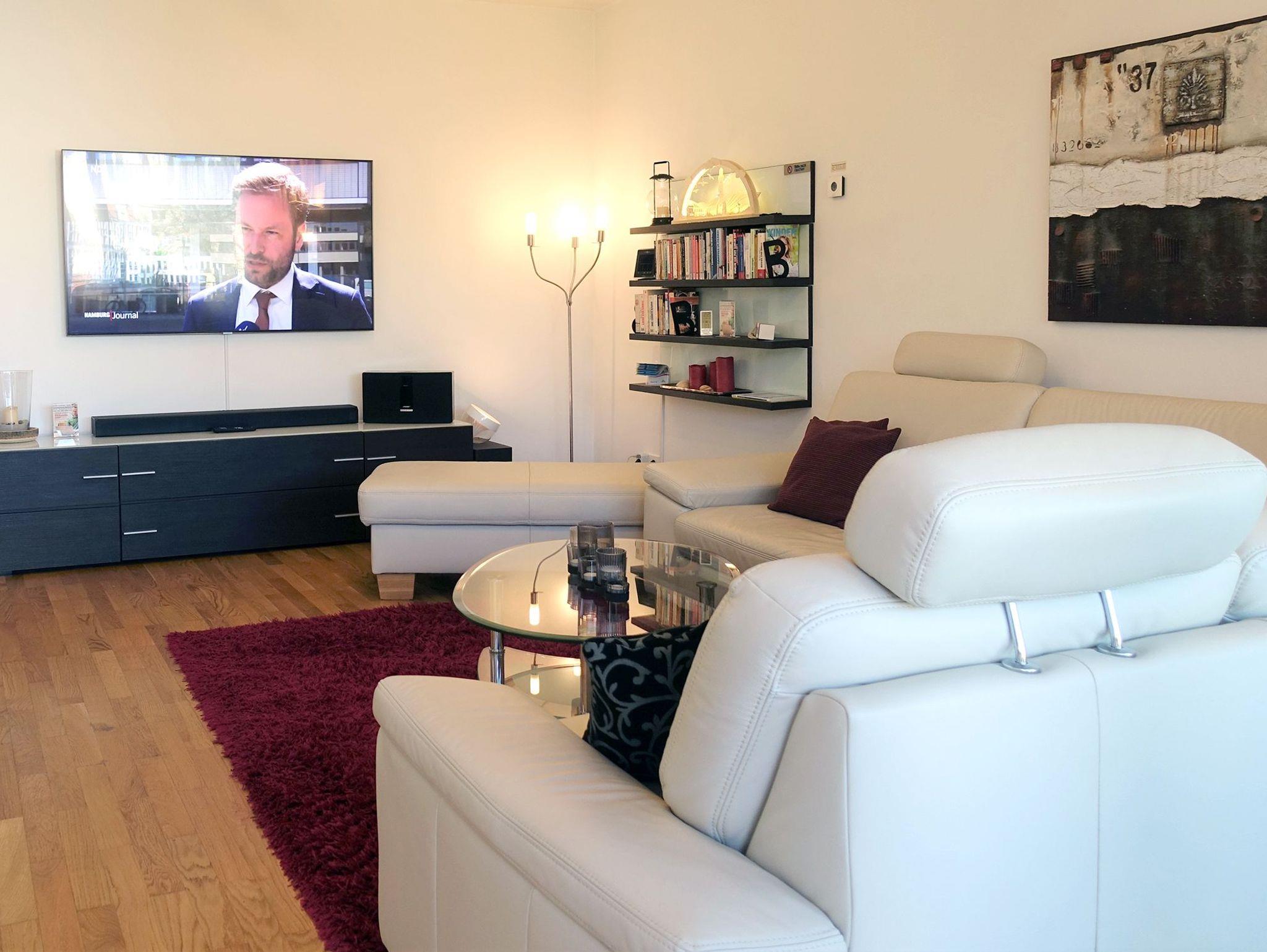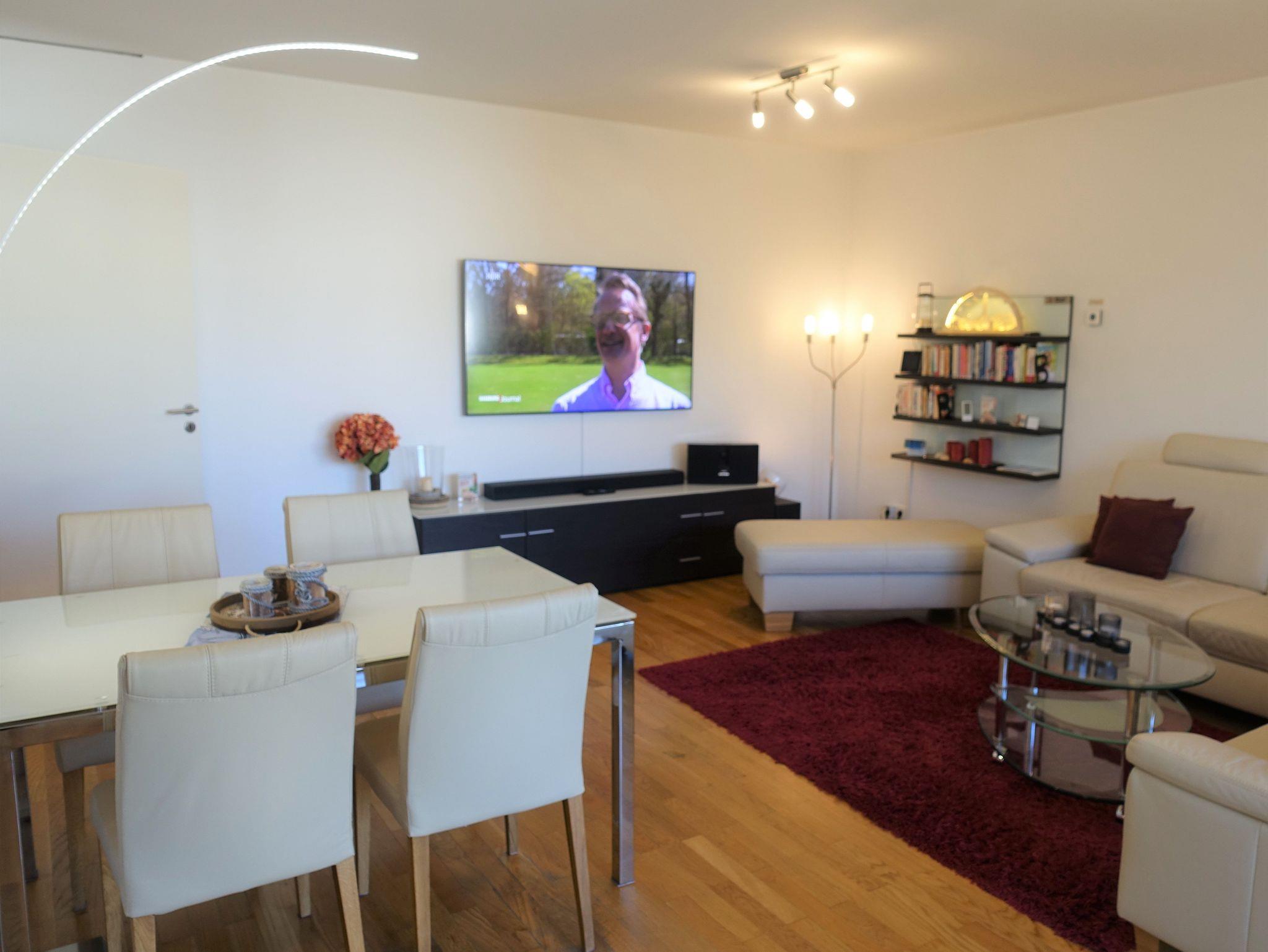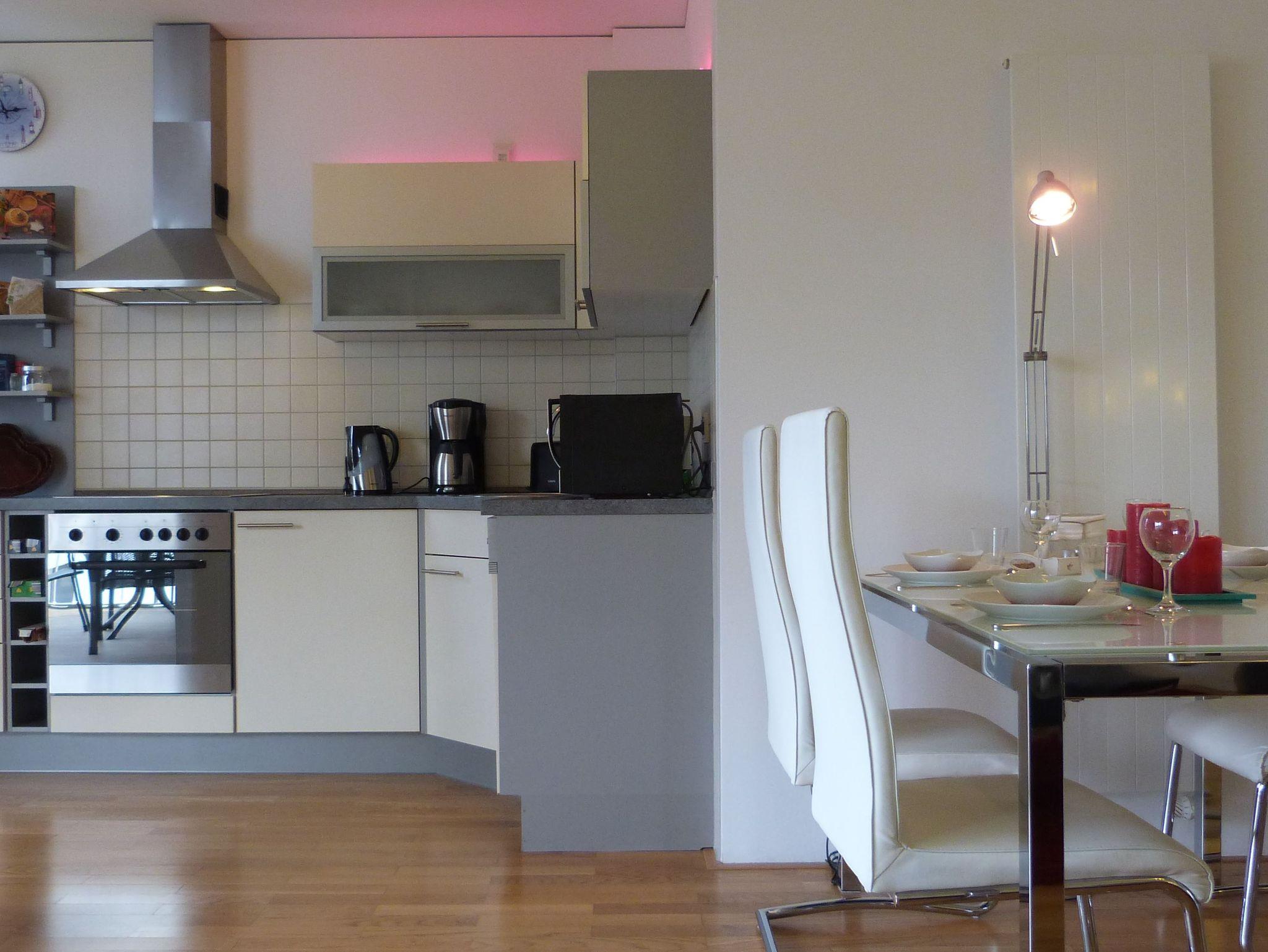 Die gesamte Wohnung ist gut eingerichtet und sehr gemütlich. Es gibt einen großen LED Bildschirm (119 cm) sowie einen Blue Ray Player und Premium Kabel HD-TV. Die Küche ist modern und hell mit allem Komfort wie z.B. einer Geschirrspülmaschine ausgestattet. Selbst ein Bügelbrett und Bügeleisen sind vorhanden.