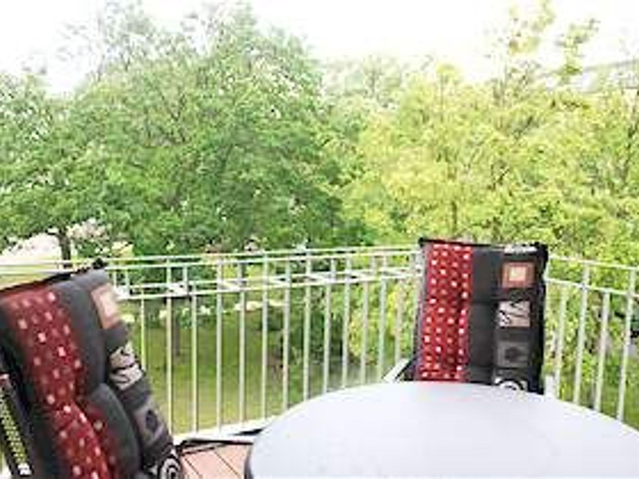 Die Ferienwohnung liegt im 2. Obergeschoss. Bodentiefe Fenster geben den Blick frei auf die große Balkon-Terrasse und den grünen Garten vor der Residenz. Genießen Sie das schöne Ambiente dieser Wohnung.