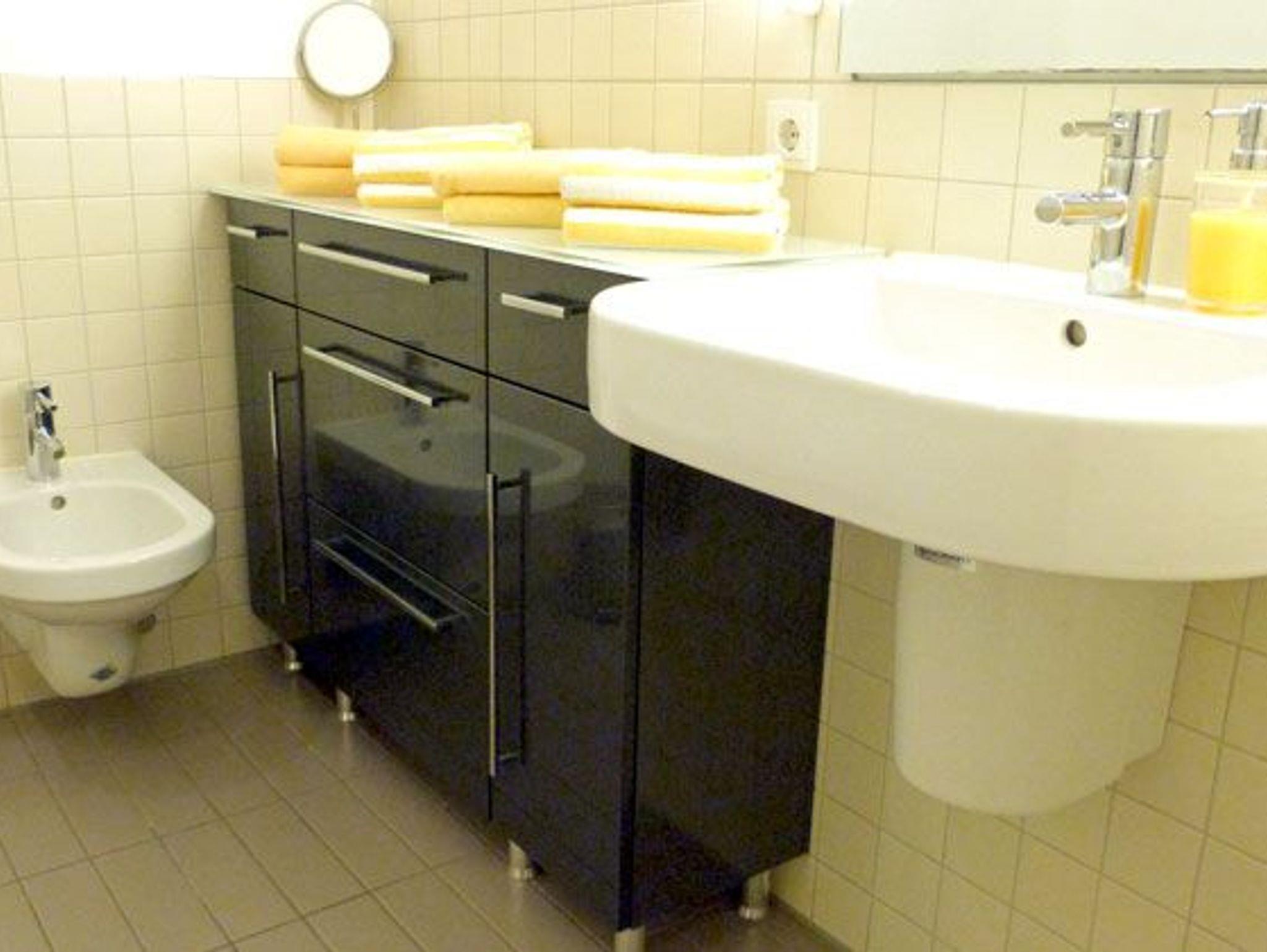 Es gibt 2 Schlafzimmer, für kleine Kinder stehen ein Babybett und ein Hochstuhl bereit. In einem der beiden Schlafzimmer befindet sich zudem ein weiterer Fernseher. Das Bad ist großzügig mit Bidet und begehbarer Dusche ausgestattet. Wie alle Wohnungen in der Kurparkresidenz ist auch diese barrierefrei gebaut.