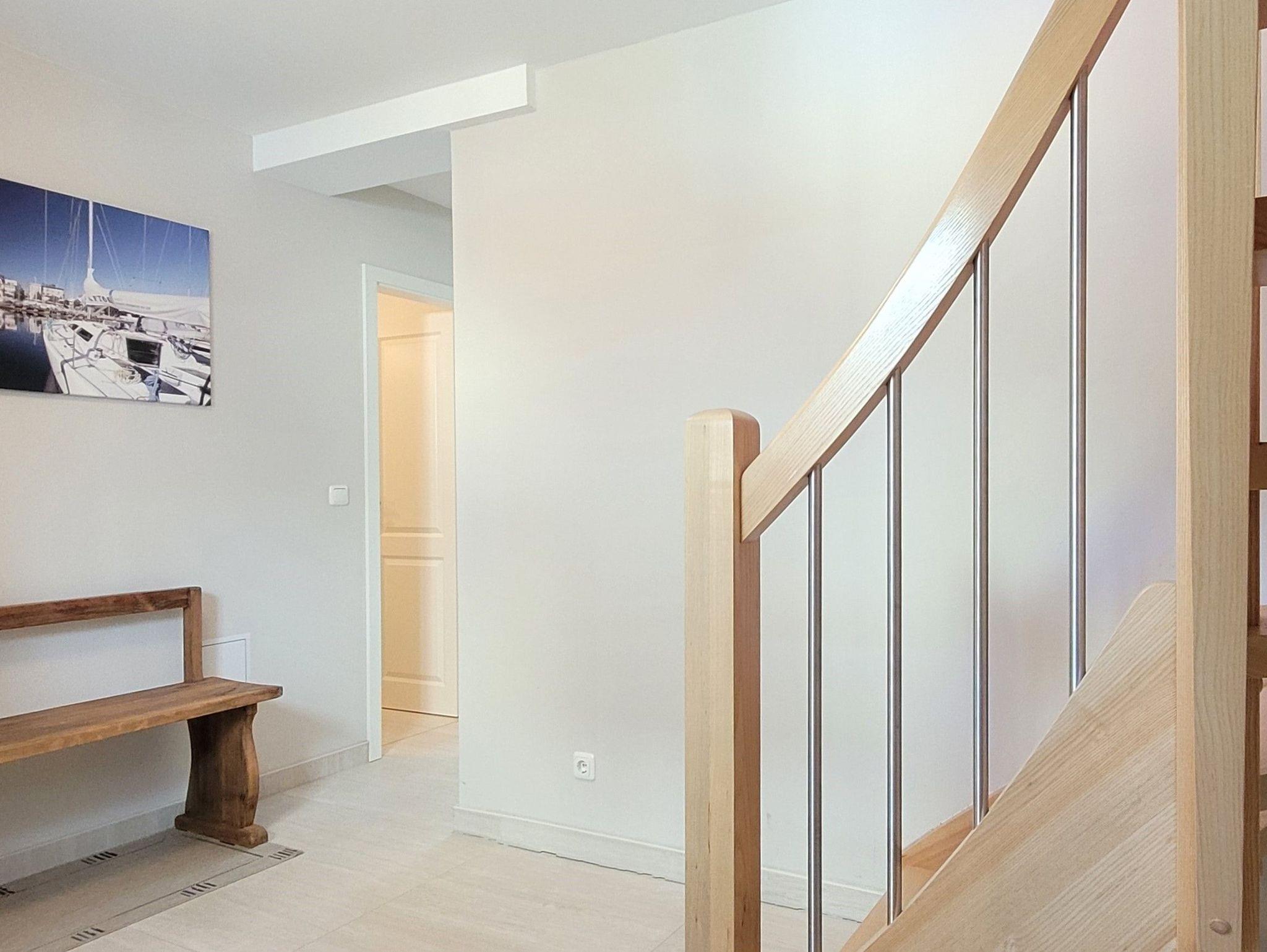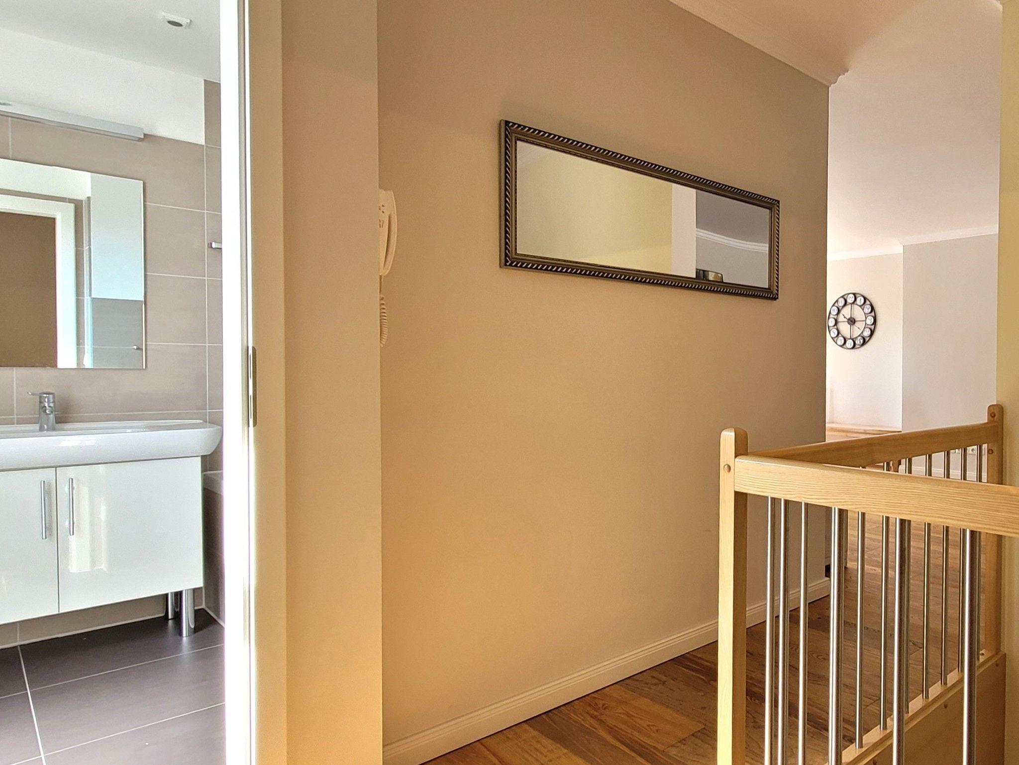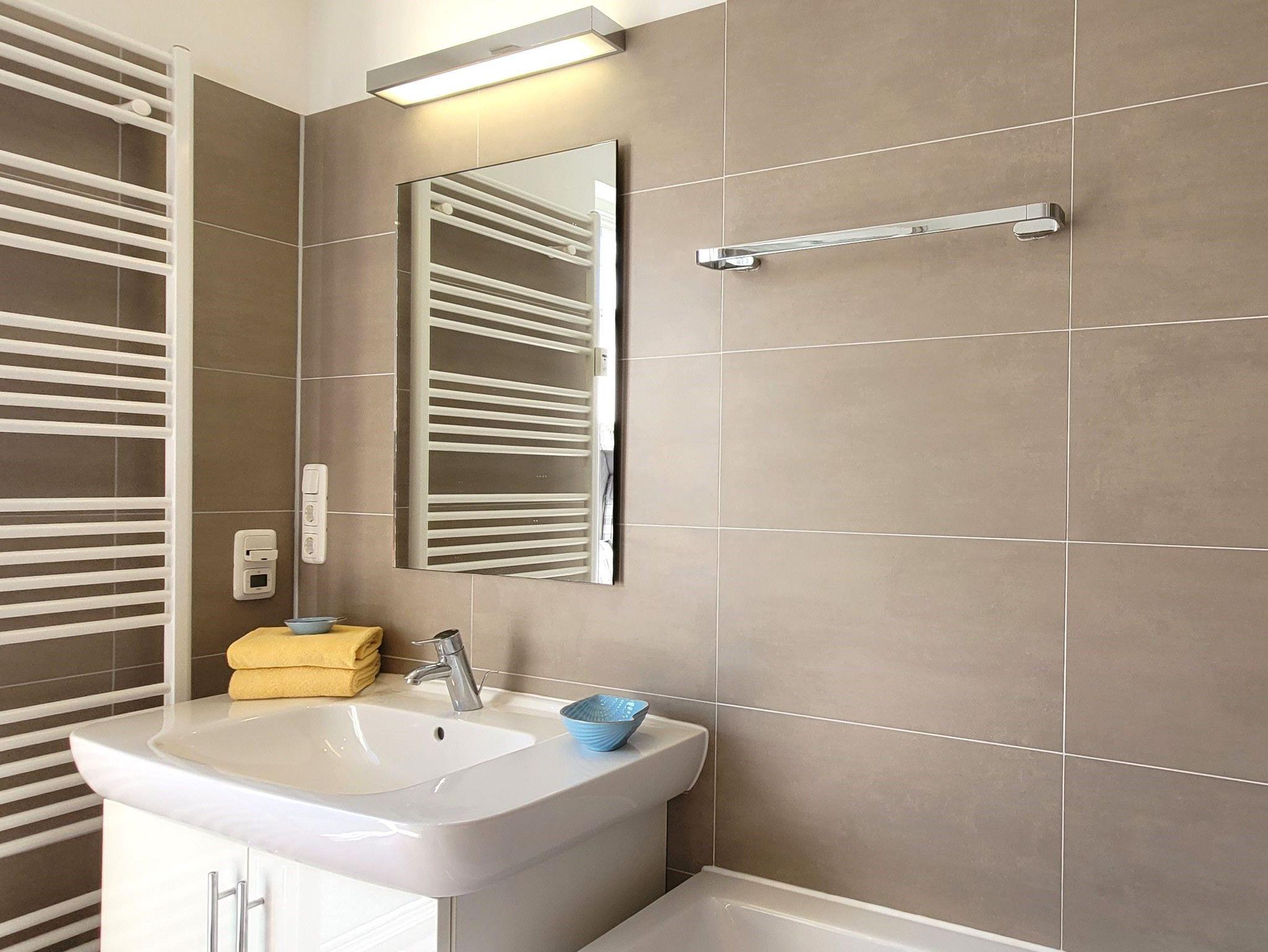 Es gibt ein großes Wohnzimmer mit 2 Sofas, ein Schlafzimmer mit Doppelbett und Etagenbett, ein Vollbad, ein gäste-WC und ein sehr gut eingerichtete Küche mit Geschirrspülmaschine. Ein Tiefgaragenplatz gegen Bezahlung ist vorhanden.