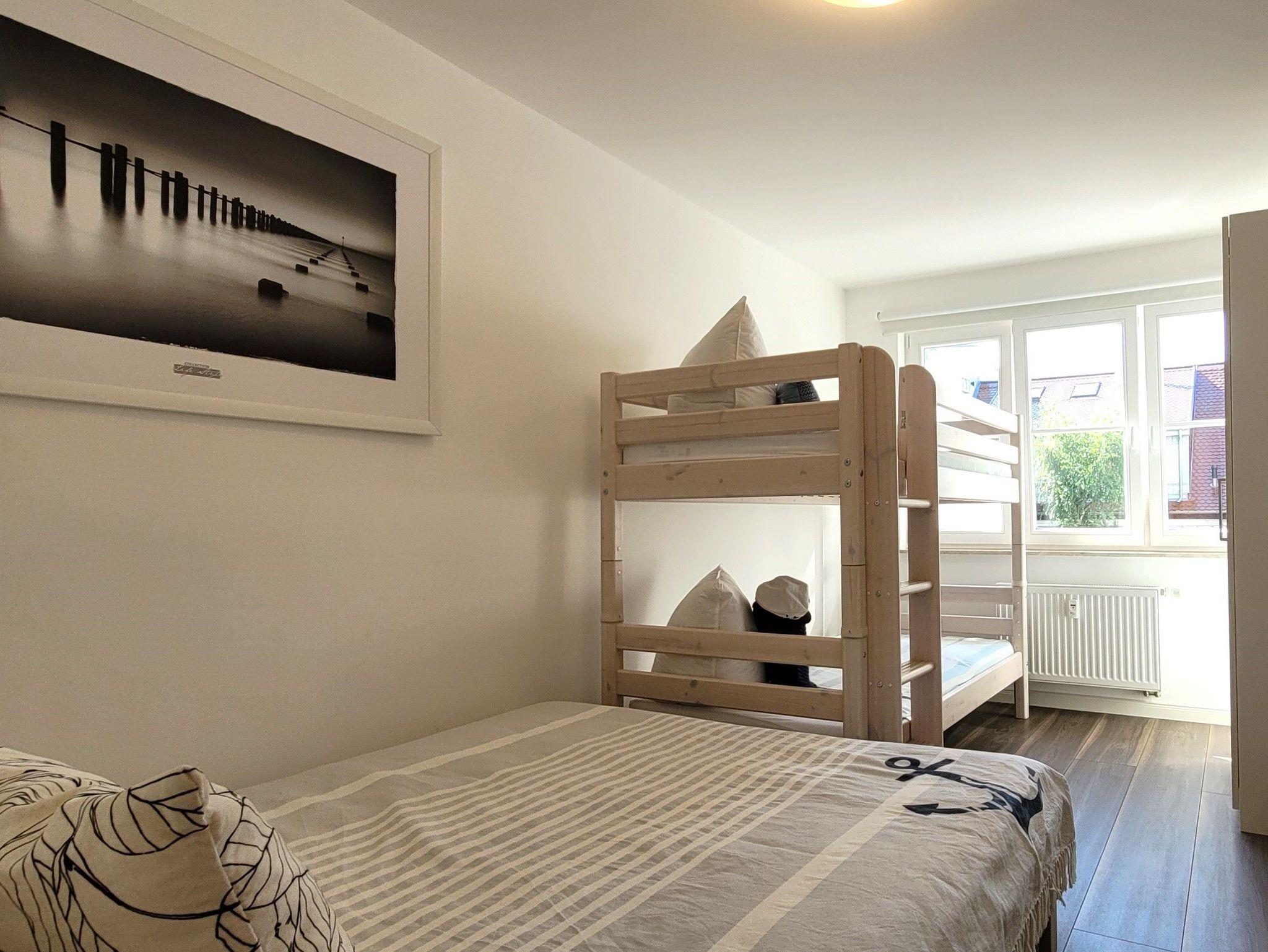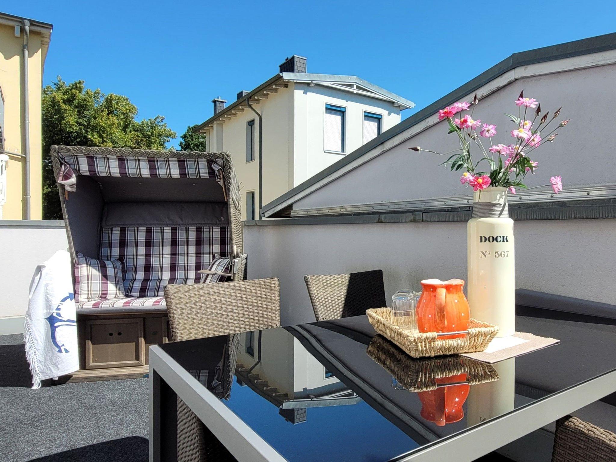 Die 85 Quadratmeter große Ferienwohnung verfügt über zwei Ebenen und bietet Platz für bis zu vier Personen. Die Fewo liegt in der malerischen Altstadt von Warnemünde und ist nur 350 Meter vom Strand entfernt.