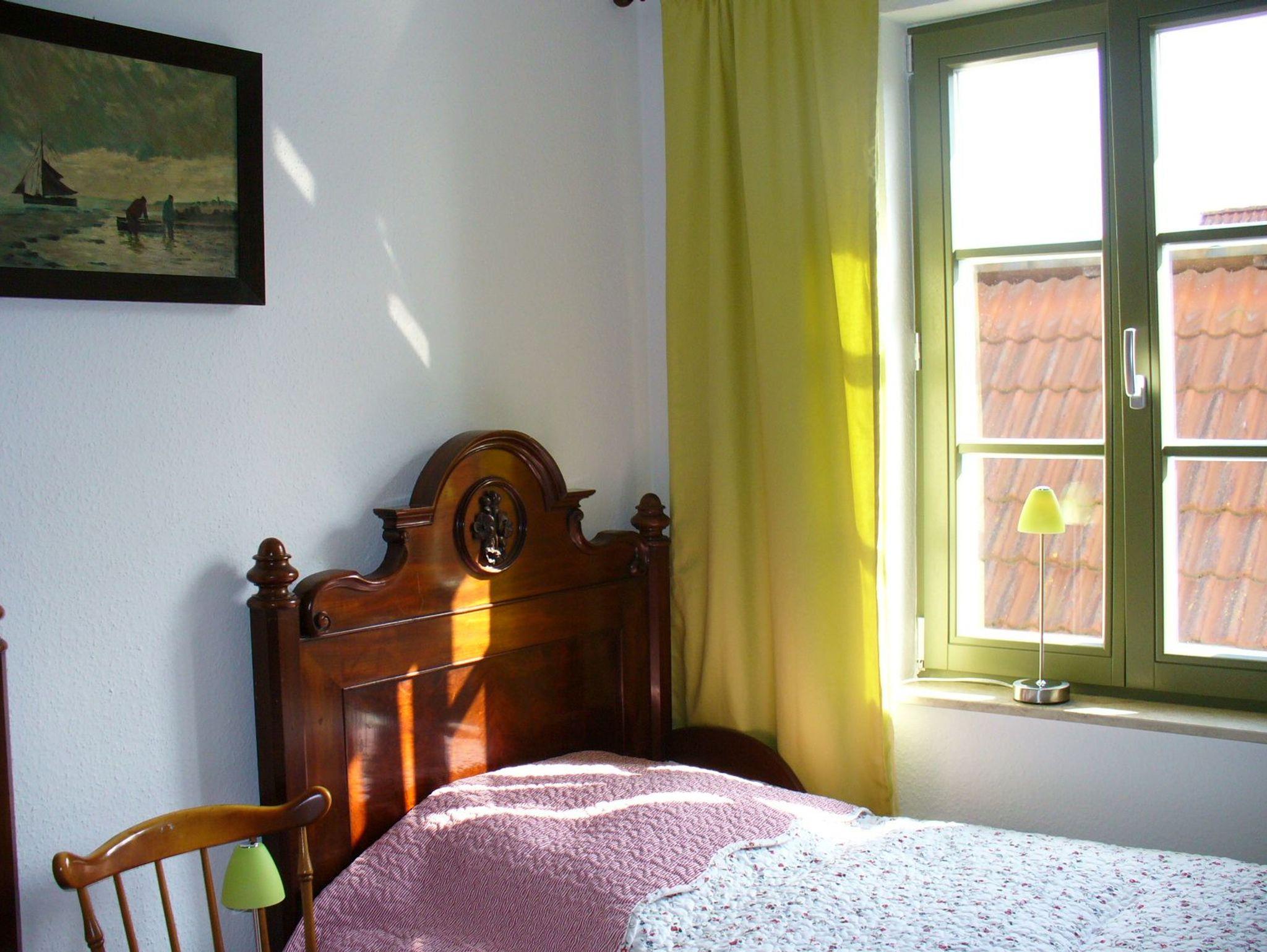 Großzügige und sehr komfortable 95 qm Ferienwohnung mit 2 Schlafzimmern, einem Vollbad und einem Gäste-WC in einem alten Kapitänshaus inmitter der pittoresken Altstadt von Warnemünde. die Wohnung ist sehr stilvoll und punktet mit einer 20 qm großen Dachterrasse. Von der Dehoga hat diese Wohnung 4 Sterne bekommen. Unsere beiden Schlafzimmer bieten Ihnen entweder ein Doppelbett oder zwei (auch) zusammenstellbare antike Einzelbetten aus Mahagoni.