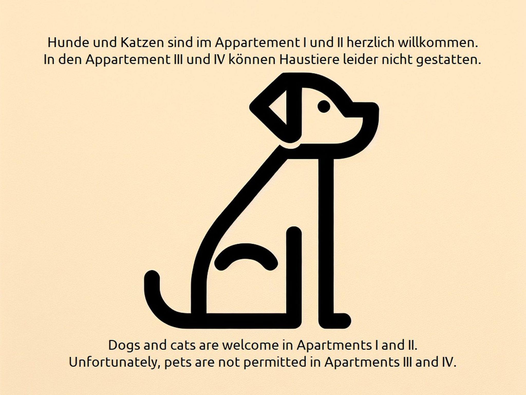 In diesem Appartement sind Hunde und Katzen herzlich willkommen. Bitte beachten Sie, dass maximal zwei Tiere untergebracht werden können. Bei sehr großen Hunden ist die Anzahl auf ein Tier begrenzt.