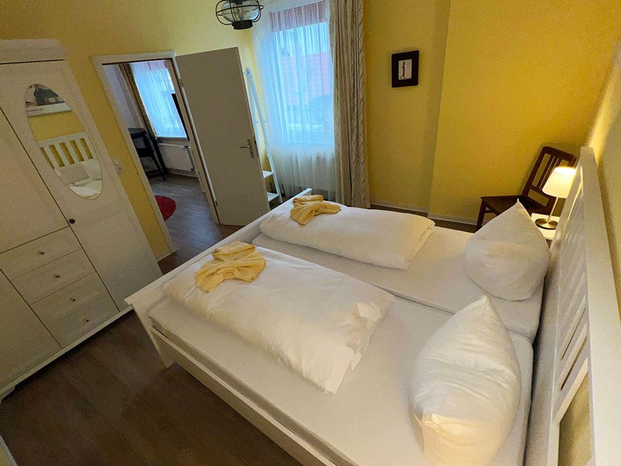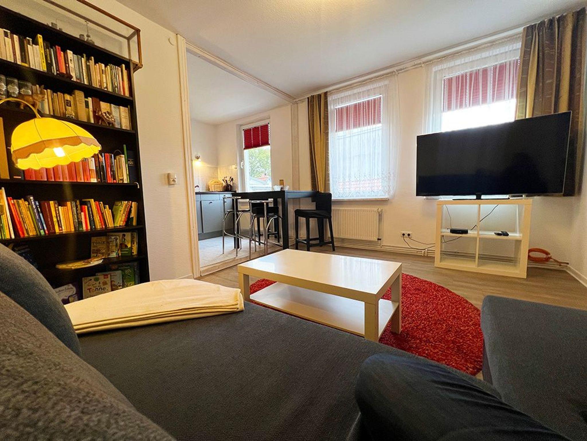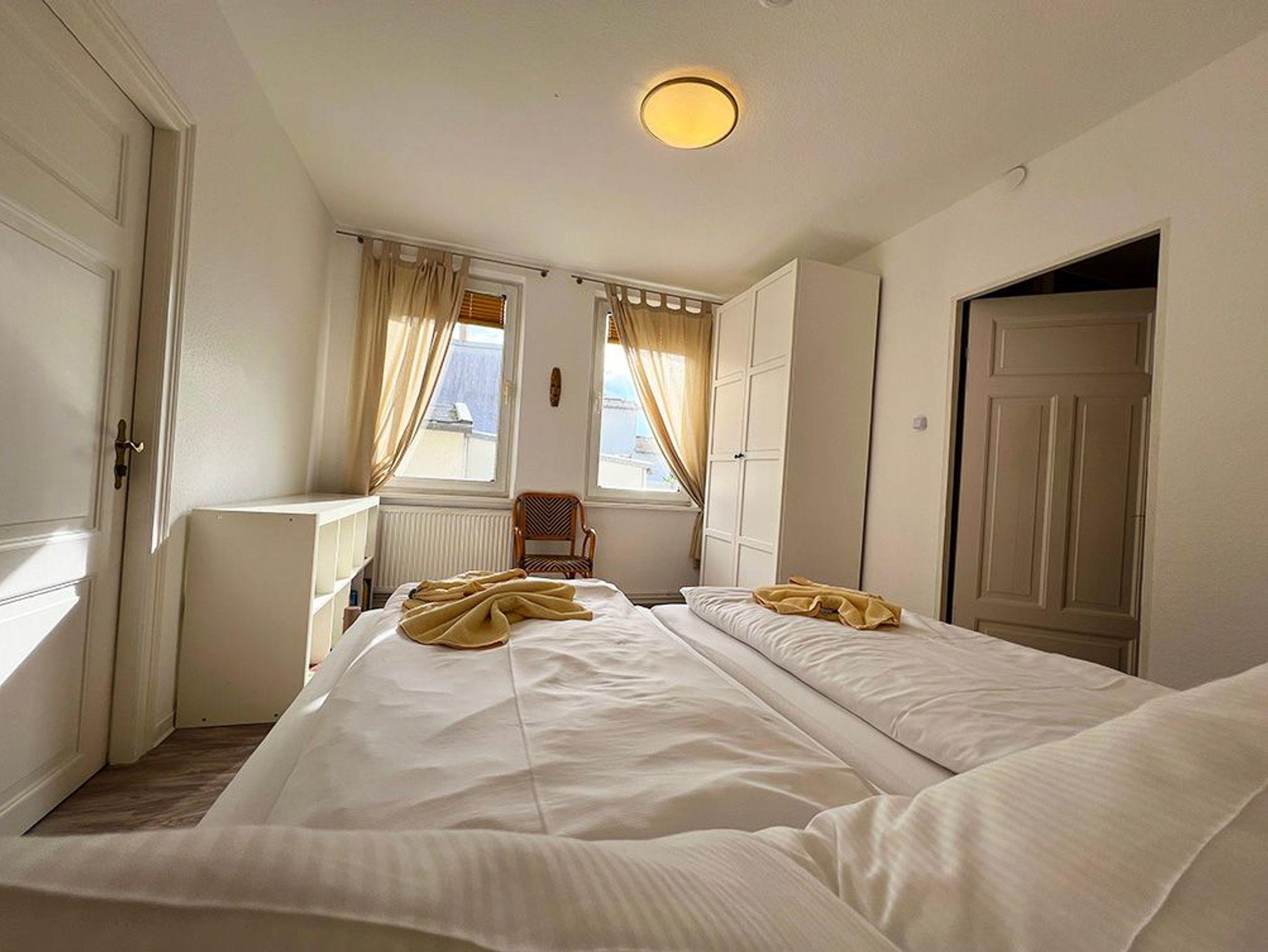 Gemütliche, helle 3-Zimmer Ferienwohnung im 1.OG eines Hinterhauses, gelegen am ruhigen Teil des alten Stroms. Der Zugang erfolgt über den Innenhof des Kapitänshauses sowie eine steile Treppe.