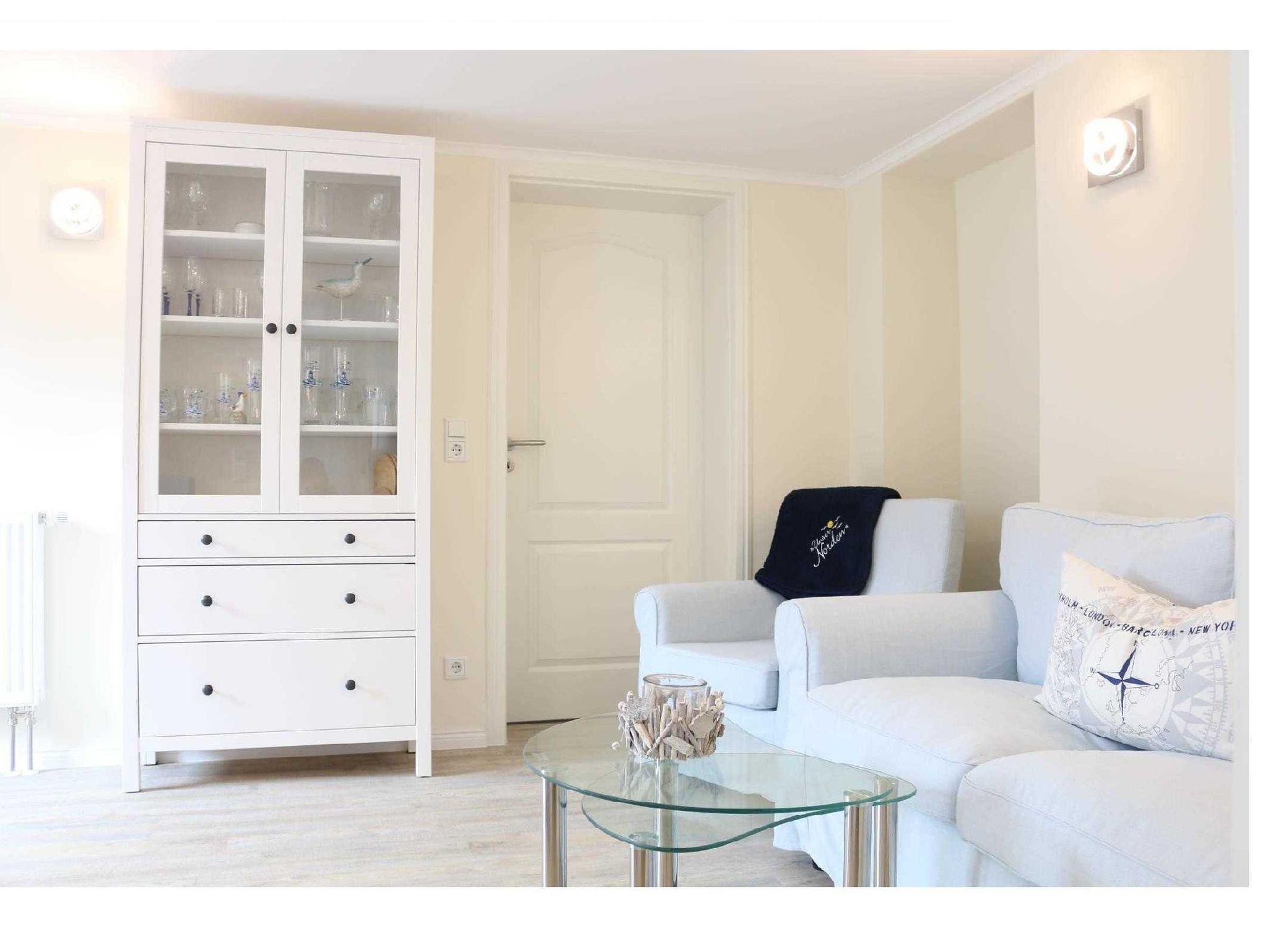 Die Souterrain-Ferienwohnung besteht aus Wohnzimmer, Schlafzimmer, Küche und Bad. Alle Räume befinden sich zur Südseite. Das Schlafzimmer ist ca. 15m² groß und ist mit einem Doppelbett und einem Einzelbett ausgestattet. Das Wohnzimmer ist ca. 12 m² groß mit einer Couchgarnitur, Fernseher und Radio. Die Küche ist ca. 8 m² groß und mit einem E-Herd mit Backofen, Kaffeemaschine, Toaster, Kühlschrank, Abwaschbecken und einem Geschirrspüler ausgestattet.