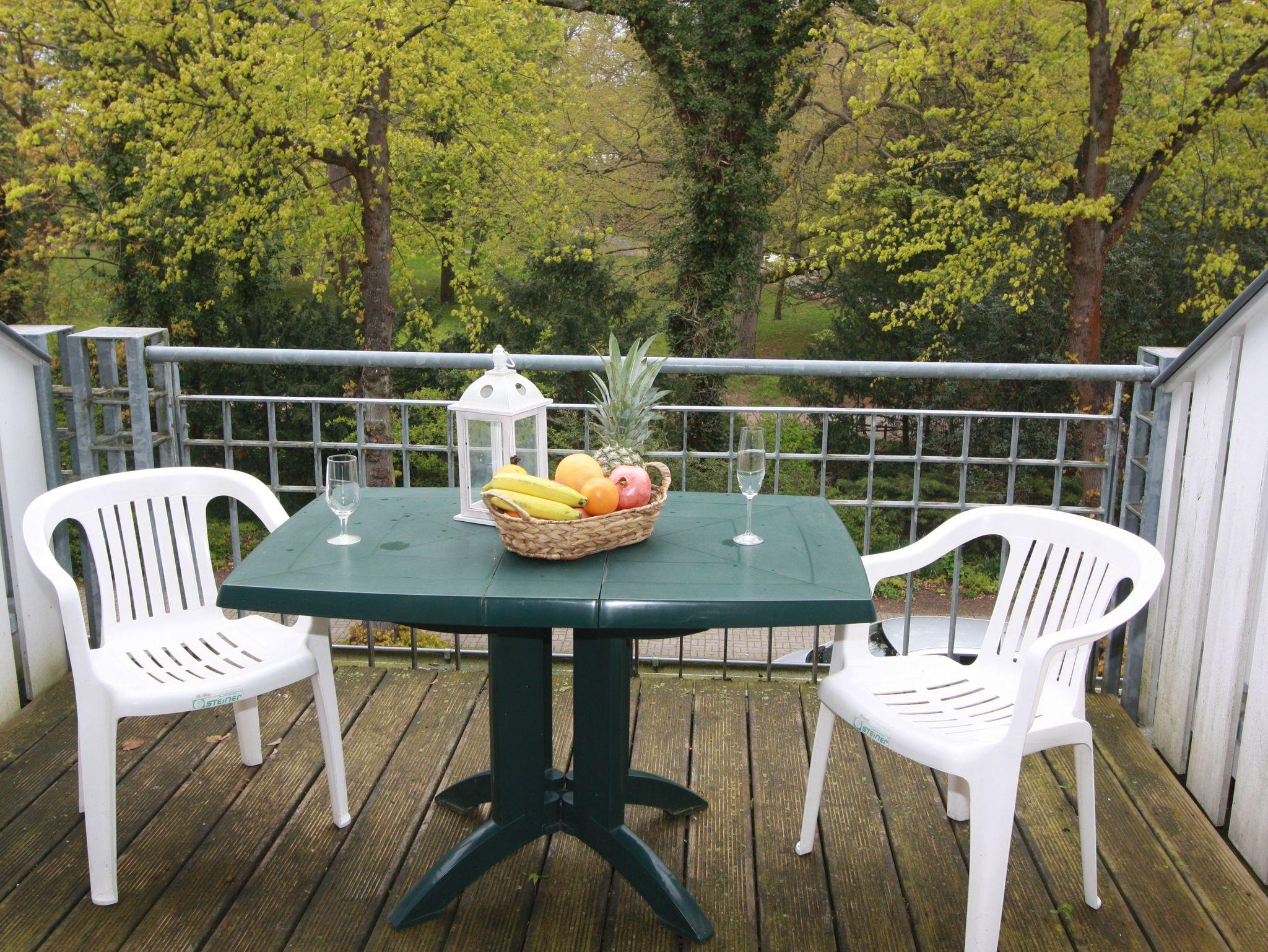 Balkon zum Kurpark und Ostsee.
