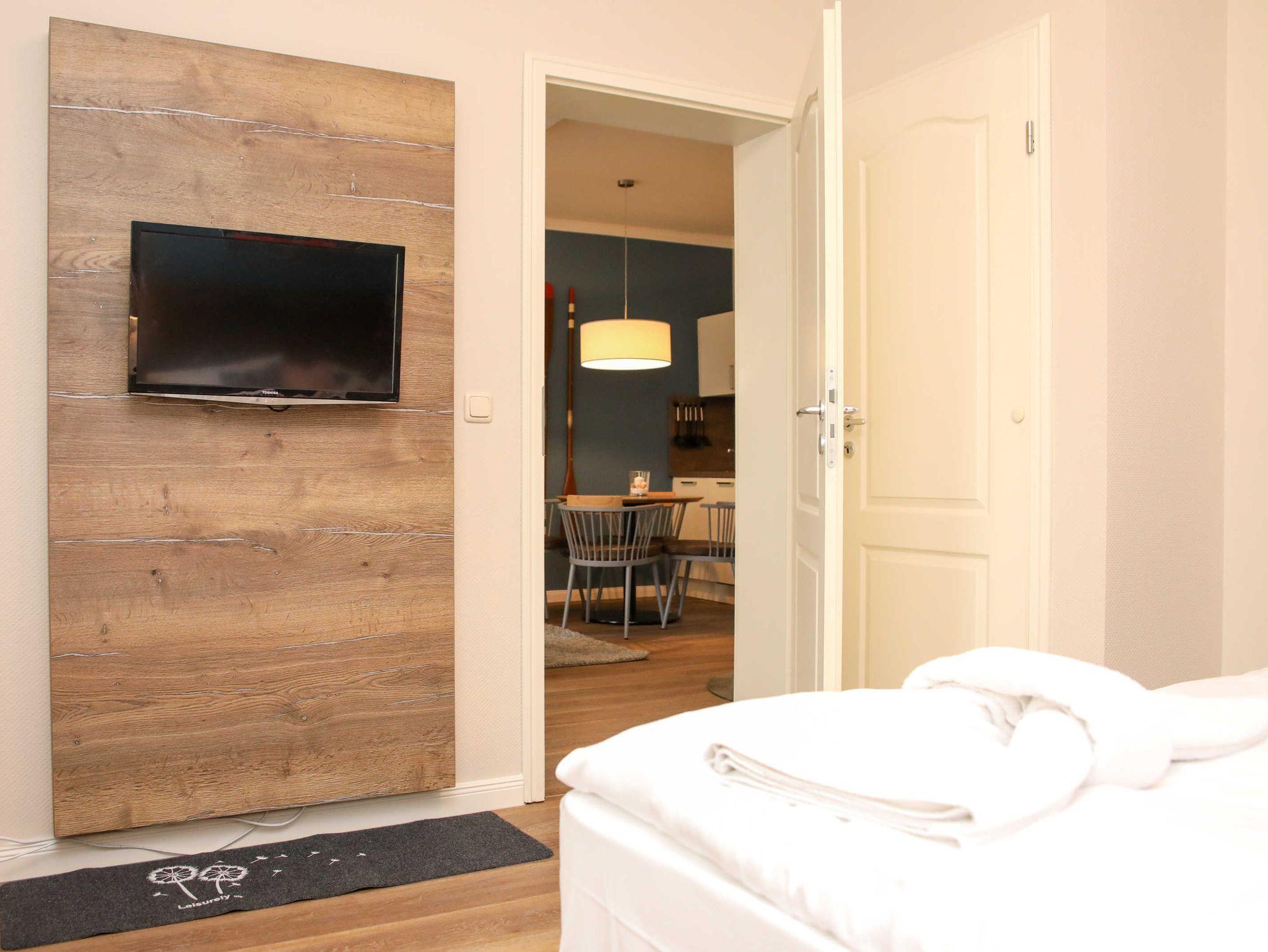 Die 2-Zimmer-Ferienwohnungen mit einer Größe von ca. 45-55 qm mit Balkon oder Terrasse bieten viel Platz für bis zu 4 Personen in separaten Wohn- und Schlafzimmern mit Doppelbett sowie ein neu gestaltetes Duschbad. Im Wohnzimmer befindet sich ein Kamin.