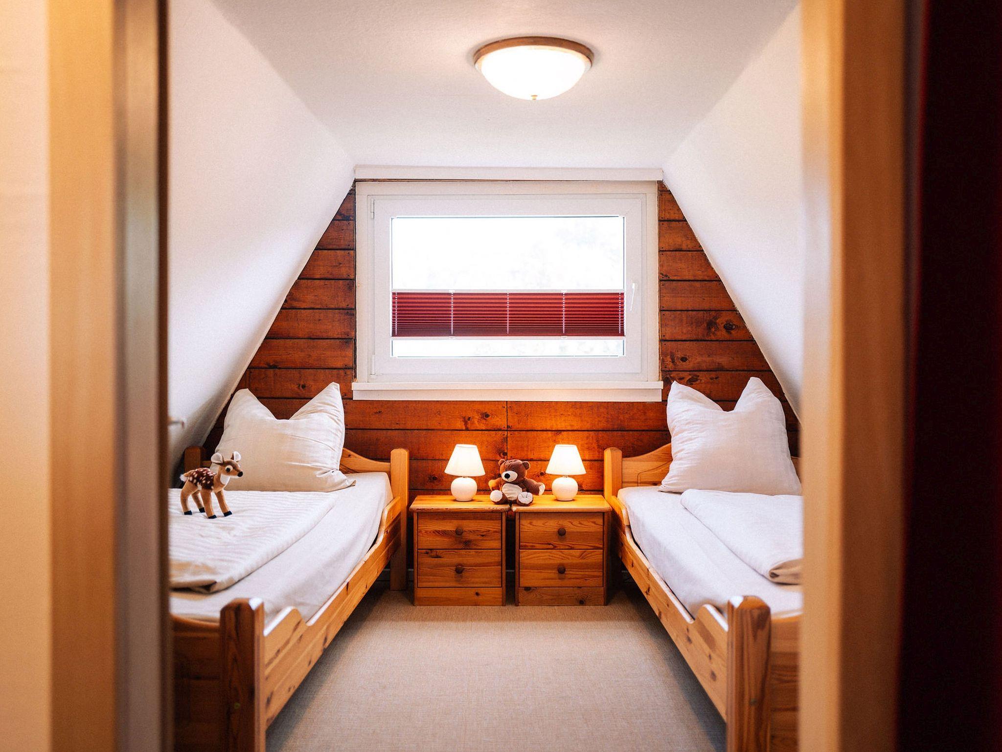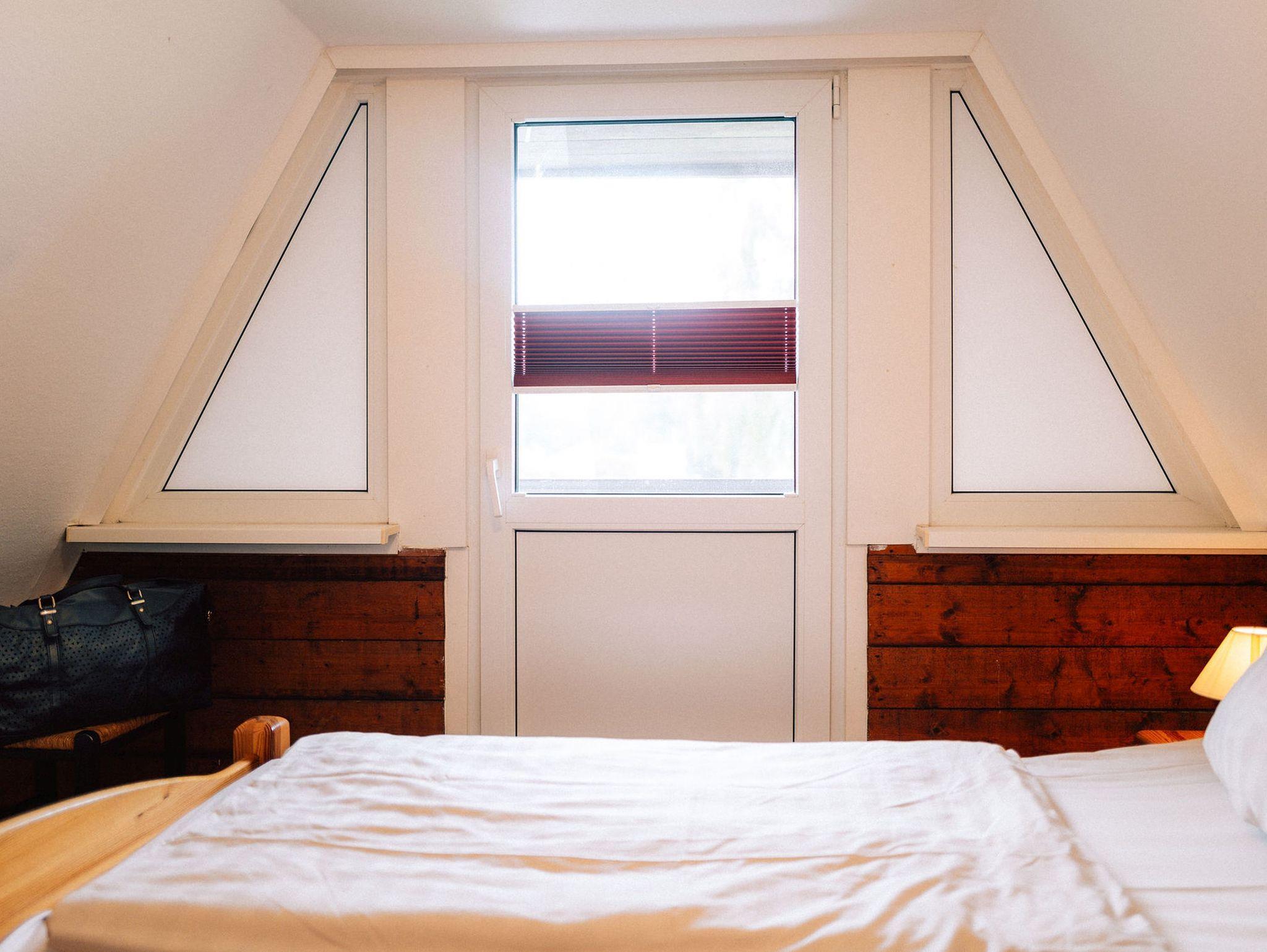 Eine steile Raumspartreppe führt zu den zwei Schlafräumen - ein Schlafzimmer mit Doppelbett, ein Schlafzimmer mit zwei Einzelbetten. Die Bettwäsche ist inklusive. Handtücher bitte mitbringen!