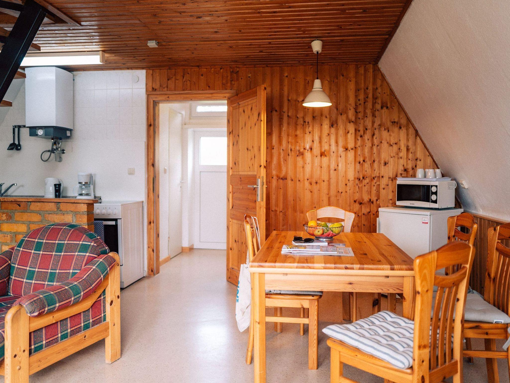 Eine steile Raumspartreppe führt zu den zwei Schlafräumen - ein Schlafzimmer mit Doppelbett, ein Schlafzimmer mit zwei Einzelbetten. Die Bettwäsche ist inklusive. Handtücher bitte mitbringen!