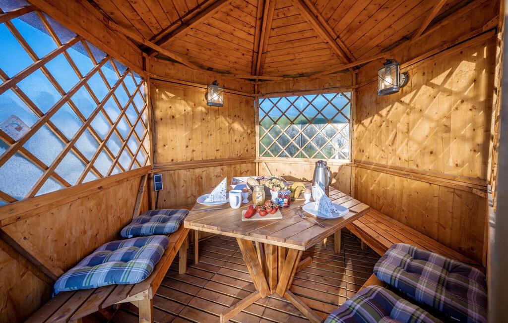 Denne feriebungalow er komfortabelt og praktisk indrettet. Ejendommen har en lille terrasse med siddeområde, et børnebassin og en grill. Her kan I slappe af og nyde solen, når vejret er godt.