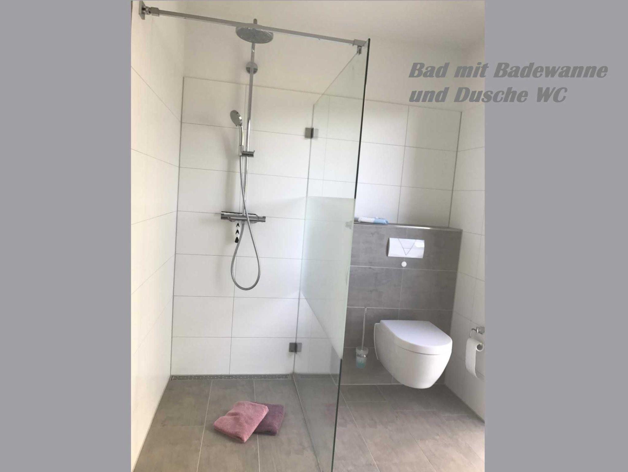 mit ebenerdiger großer Dusche und Badewanne, WC