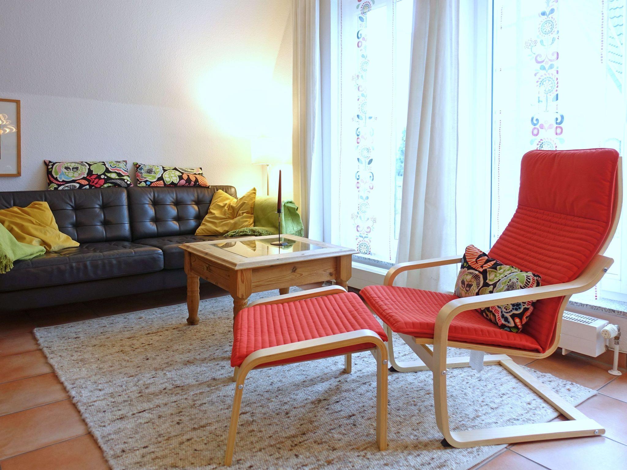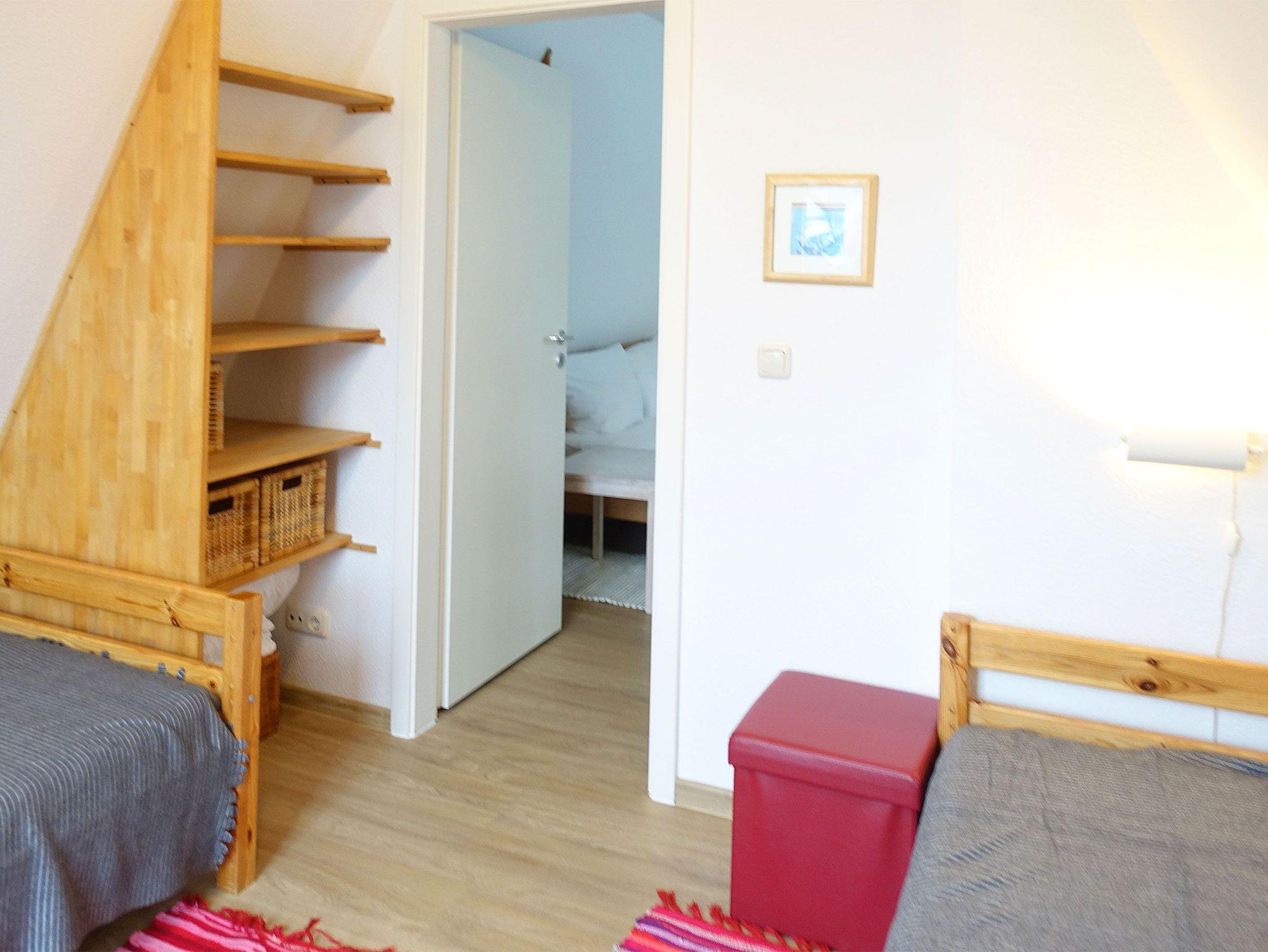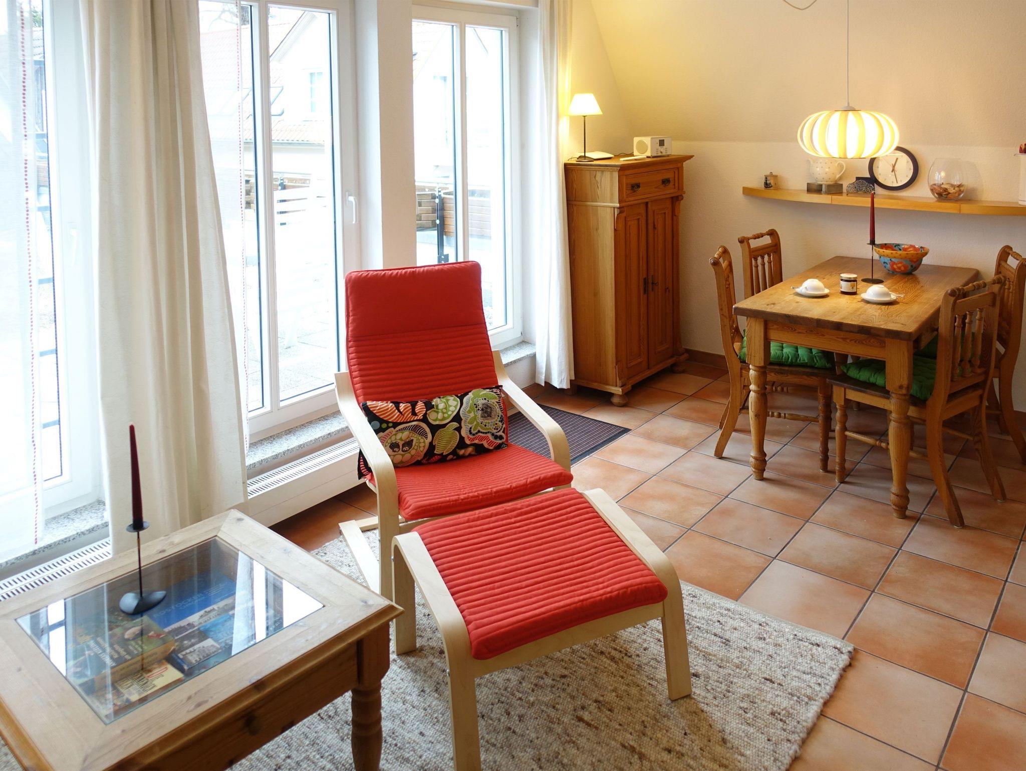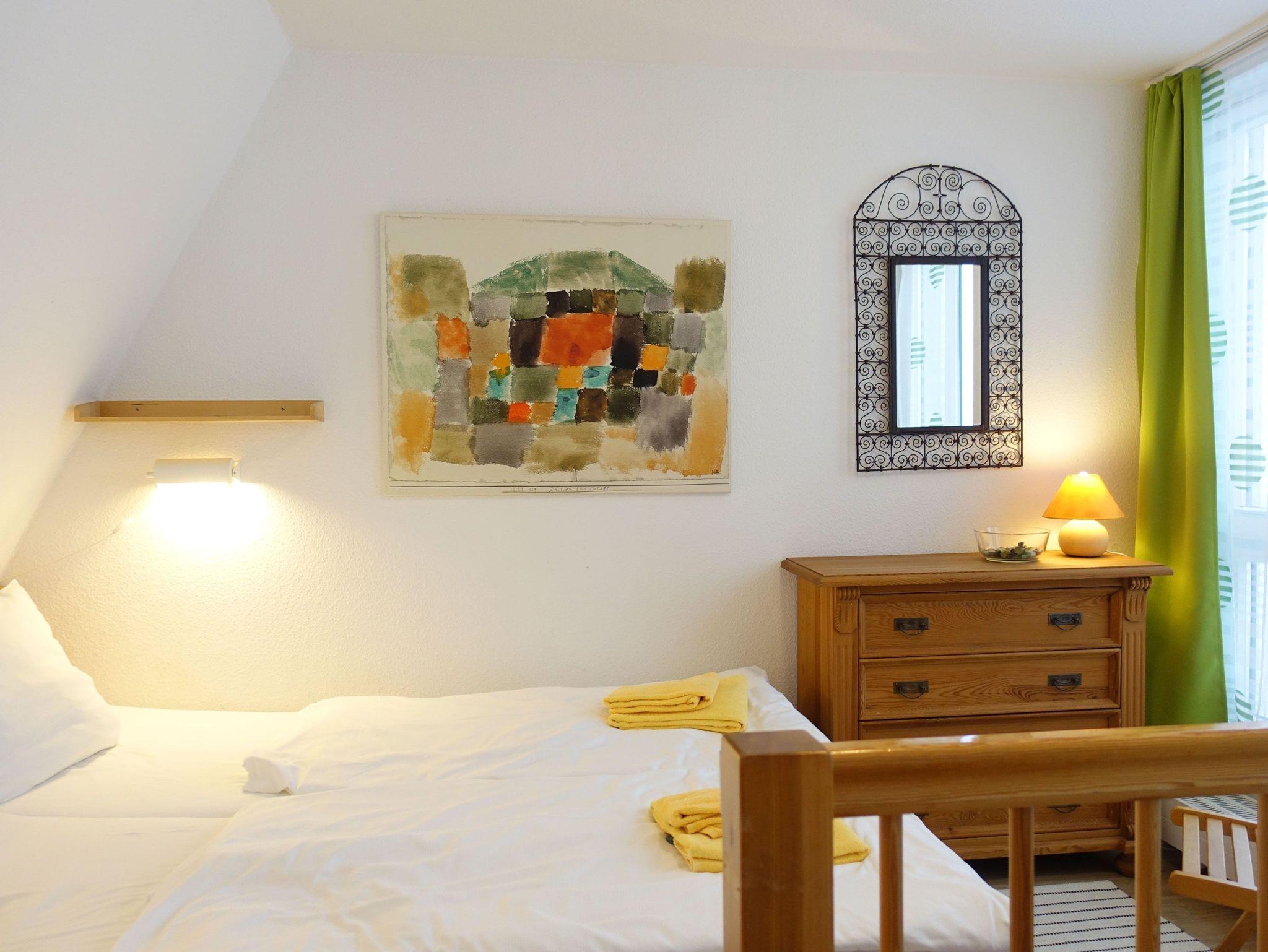 Ferienwohnung in Warnemünde mit zwei Ebenen für 2 bis 4 Personen, die liebevoll eingerichtet wurde. Sie liegt in der oberen Etage wie in einem eigenen Nurdachhaus.