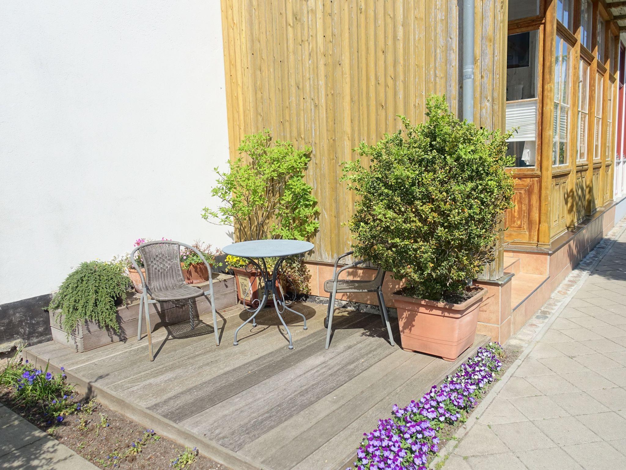Ebenerdig gelegene gemütliche 2 Zimmerwohnung von 40 qm in den typischen pittoresken Verandahäusern von Warnemünde. Eine kleine Terrasse gehört zur Wohnung, von hier lässt sich das Altstadtleben beobachten.