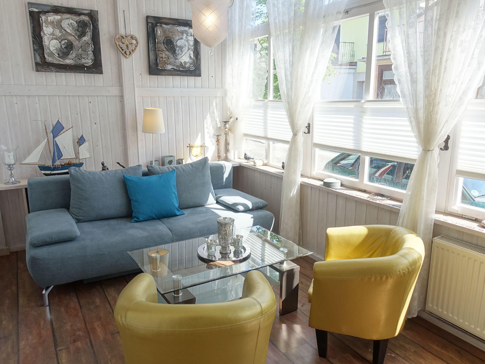 Gemütlich eingerichtete 2 Zimmer Ferienwohnung in den für Warnemünde so typischen Veranden der Kapitänshäuser in der pittoresken Altstadt von Warnemünde. Ein Parkplatz befindet sich in 10 Min. Entfernun gim Parkhaus Molenfeuer.