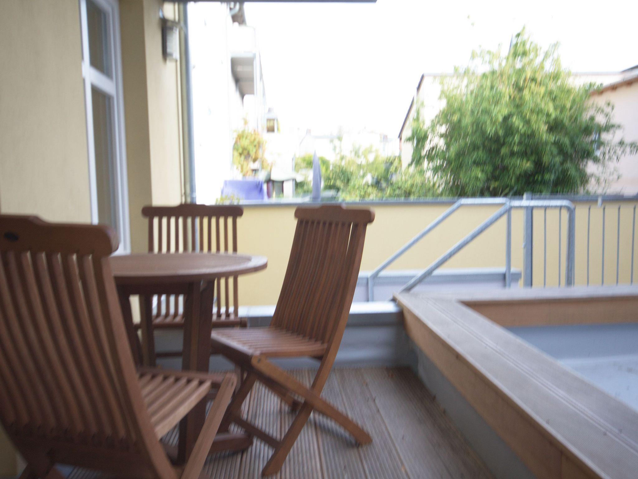 Helle kleine Ferienwohnung mit schöner Südterrasse für 2 Erwachsene und 2 Kinder in toller Lage am Kurpark von Warnemünde gelegen in einer alten restaurierten Villa. Der Strand liegt ganz nah, nur einmal durch den Kurpark durch.