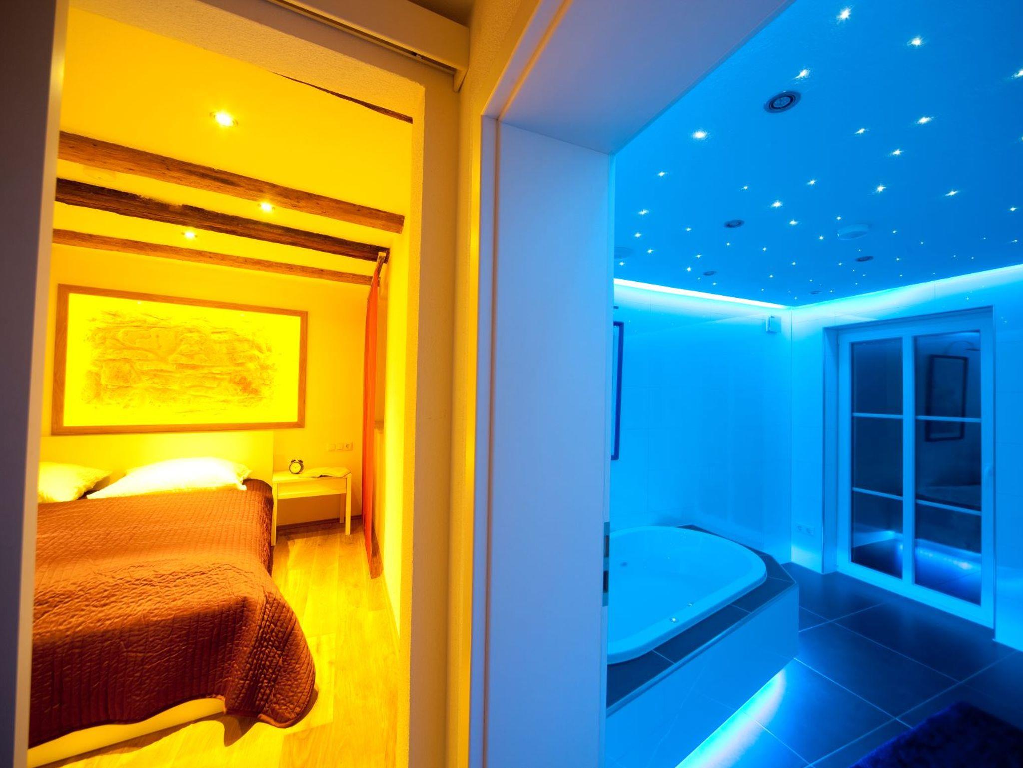 Hier können Sie sich mit Ihrer Familie richtig wohlfühlen. Dafür stehen für Sie eine Bluetooth-fähige Whirlwanne, die ebenerdige Rainshower-Dusche, ein großer Balkon und leckere Weine im eigenen Kellergewölbe bereit. Sie haben während Ihres Aufenthaltes kostenfreien W-Lan-Zugang sowie Sat-TV. Ihr Parkplatz ist gleich gegenüber des Ferienhauses in einem umzäunten Bereich.