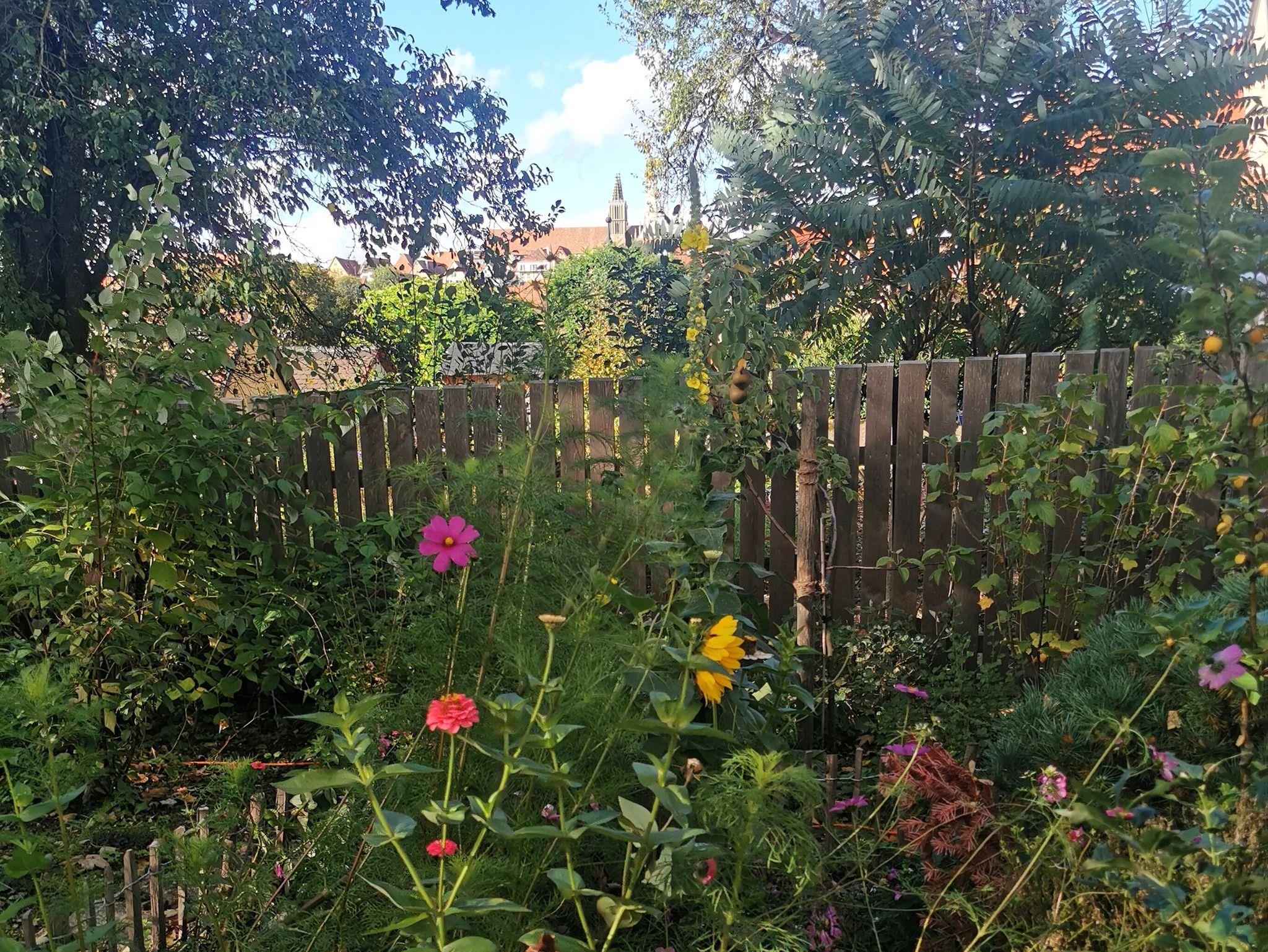 Draußen wartet ein Garten mit Sandkasten, Matschküche, Spielsachen und Trampolin – ein echtes Paradies für Kinder. Und unsere überdachte Terrasse steht allen Gästen jederzeit zur Verfügung. Von hier aus genießt man einen wunderschönen Blick auf die Altstadt – ideal für eine Tasse Kaffee am Morgen oder ein Glas Wein am Abend.