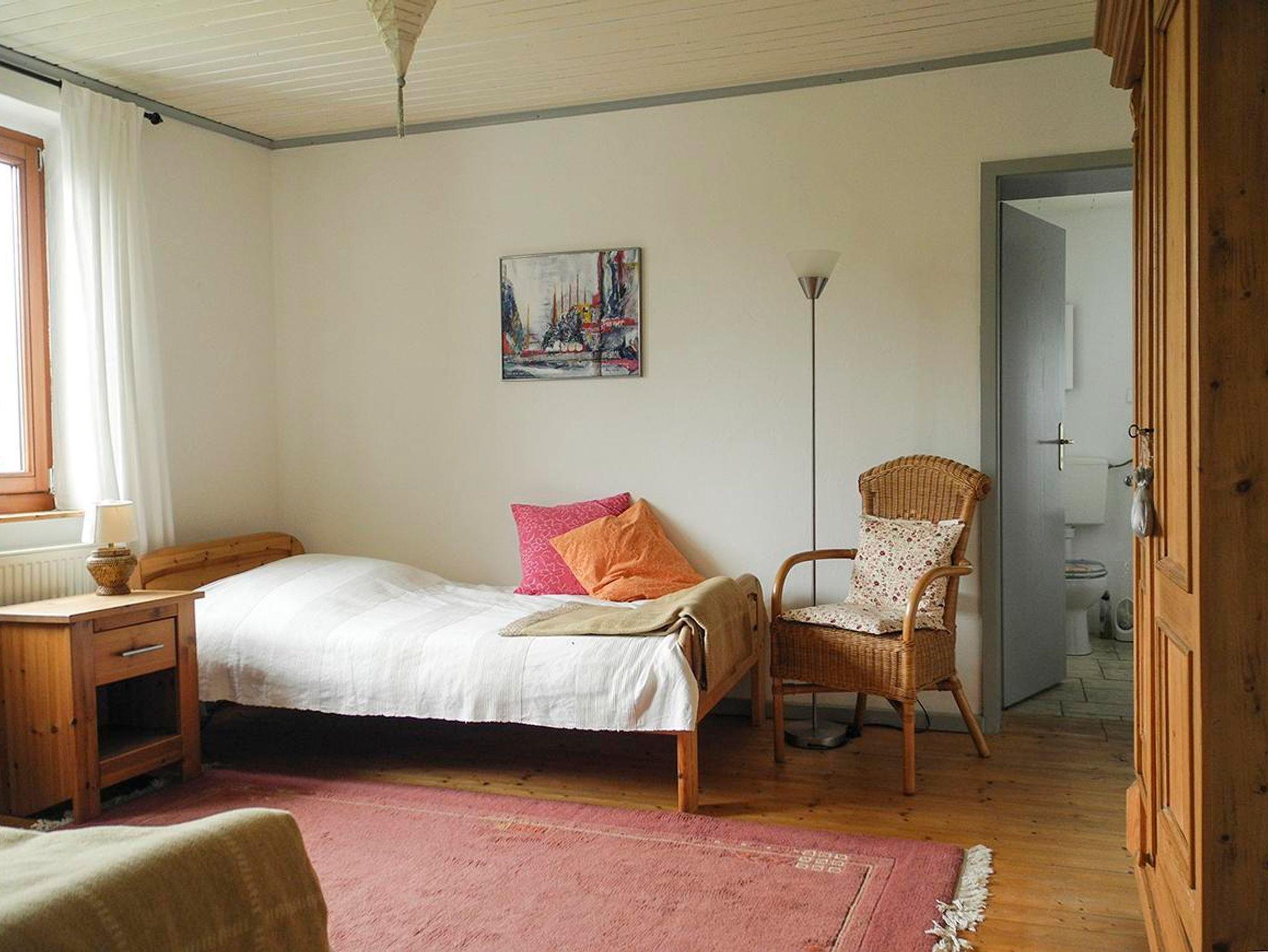Die Zweier- und Mehrbettzimmer sind mit bequemen Betten, großzügigen Nachttischen, schönen alten Holzschränken, Stühlen und Sesseln gemütlich möbliert. Alle Zimmer haben jeweils ein eigenes, individuell eingerichtetes Duschbad. Die Doppelzimmer können auch als Einzelzimmer genutzt werden. Das separate Einzelzimmer im Innenhof wird nur vergeben bei Seminaren oder Retreats.
