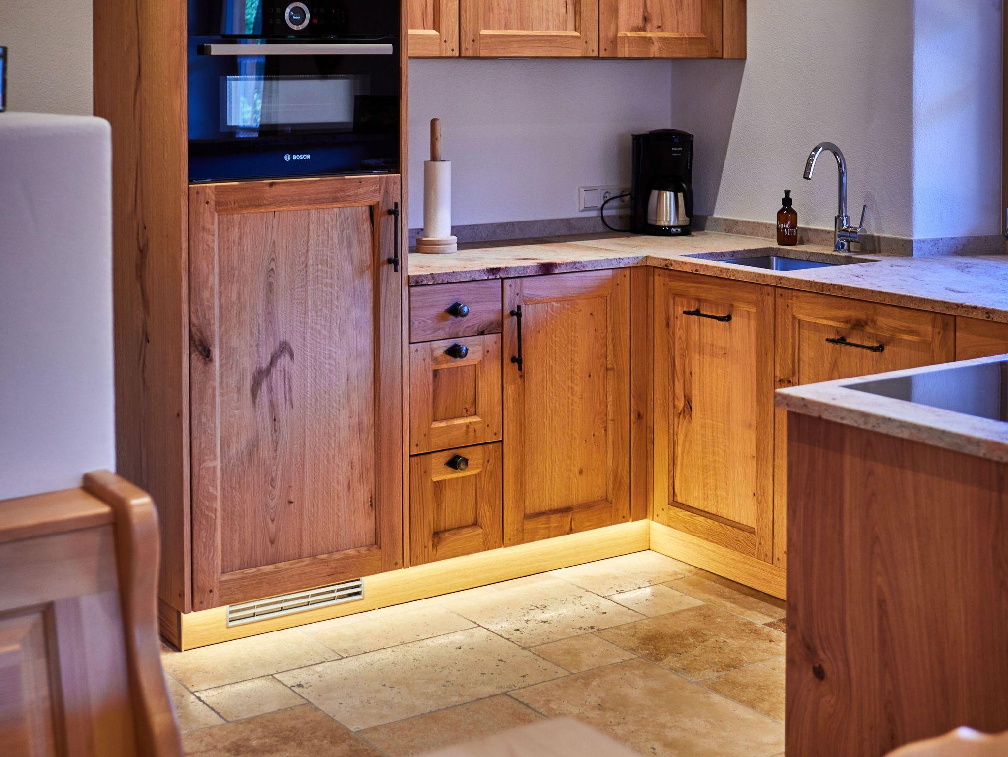 Alle unsere Wohnungen sind mit viel Holz von unseren einheimischen Handwerkern ausgestattet ? kostbares Zirbenholz für erholsamen Schlaf, hochwertige Esche direkt aus dem Tegernseer Tal & exklusives Altholz ? was für ein Gefühl wohliger Geborgenheit sorgt.
