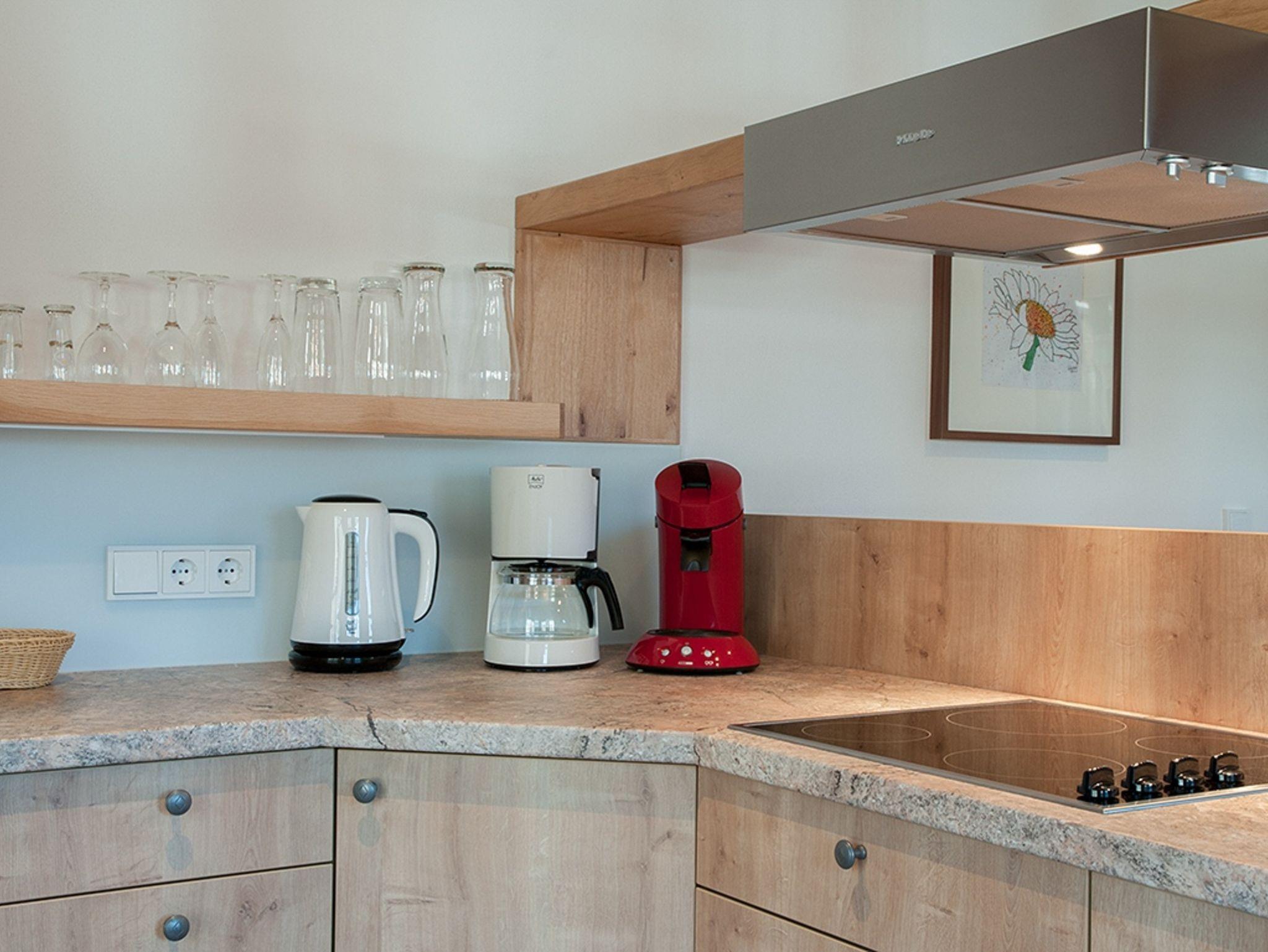 • Küche mit Miele-Geräten (Spülmaschine, Backofen, Mikrowelle), Senseo-Kaffeemaschine und Filterkaffeemaschine