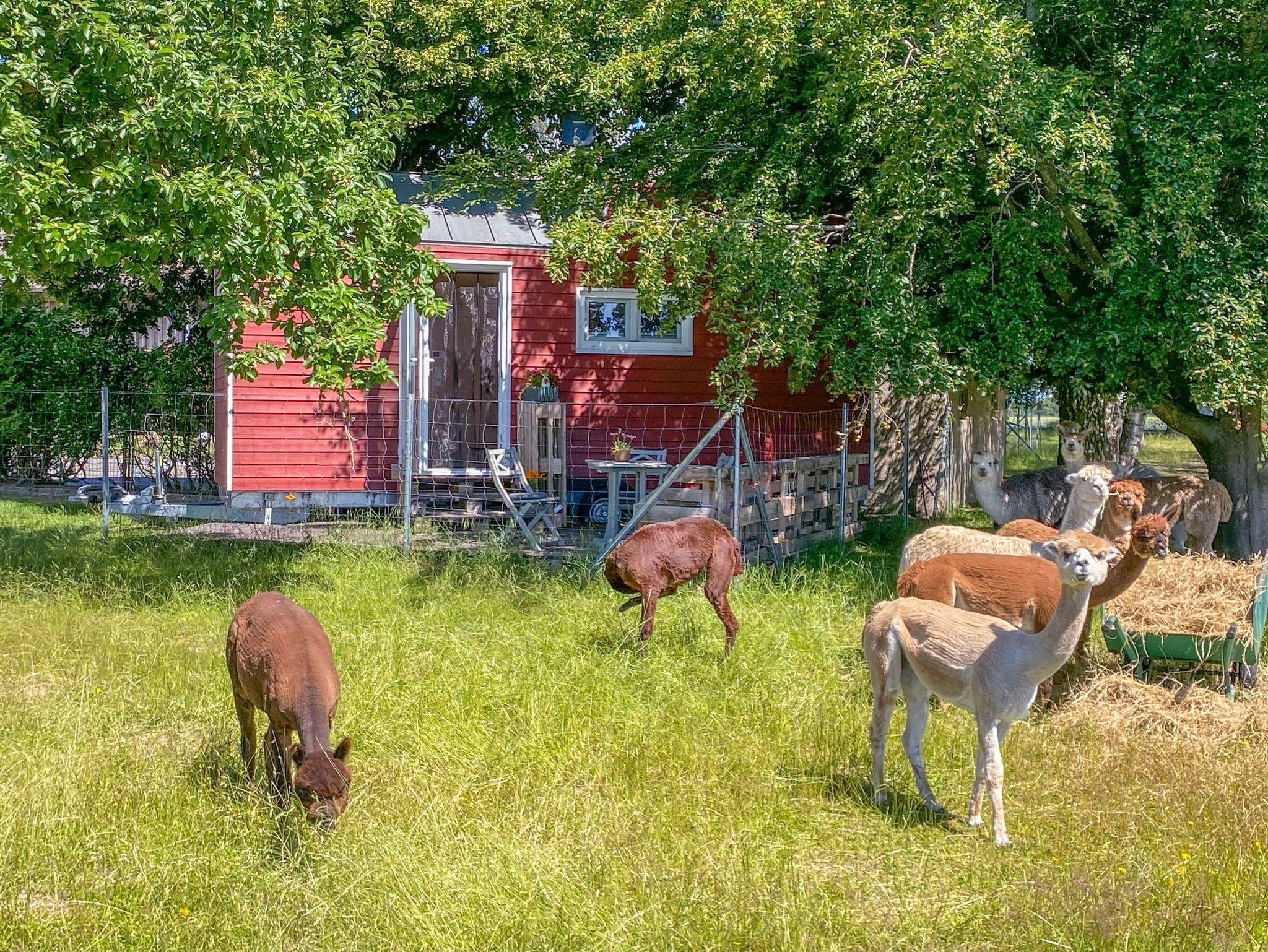 Erleben Sie Urlaub auf einer Alpaka Farm im Tiny House. Das kleine Ferienhaus im modernen Schwedenstil bietet Ihnen 21 m² Wohnfläche sowie eine Terrasse mit wunderschönem Blick über die Alpaka-Weide. Im Tiny House stehen Ihnen alle Annehmlichkeiten für einen erholsamen Urlaub zur Verfügung. Typisch minimalistisch eingerichtet verfügt das kleine Haus über einen Wohnbereich mit einer gut ausgestatteten Küche sowie ein ausgeklügeltes Schrankdesign. Der Schlafbereich mit Doppelbett ist mit dem Wohnbereich über eine Treppe verbunden. Ein separates Bad mit Dusche und WC ist ebenso integriert. Ein Parkplatz auf dem Grundstück ist vorhanden.