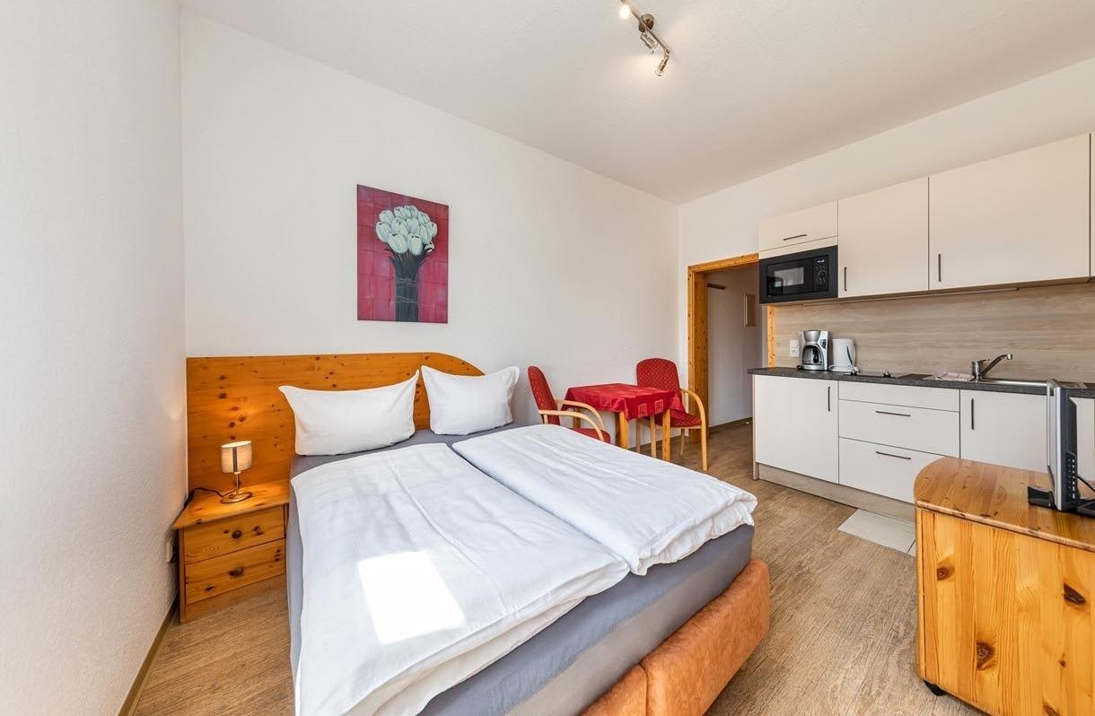 Der Ferienhof ist ein aus dem 19. Jh. stammender Vierseitenhof mit langer Geschichte. Das Ferienzimmer 3 ist besonders preiswert und richtig für zwei Personen. In der Küchenzeile finden Sie alles, was für eine Selbstversorgung wichtig ist.