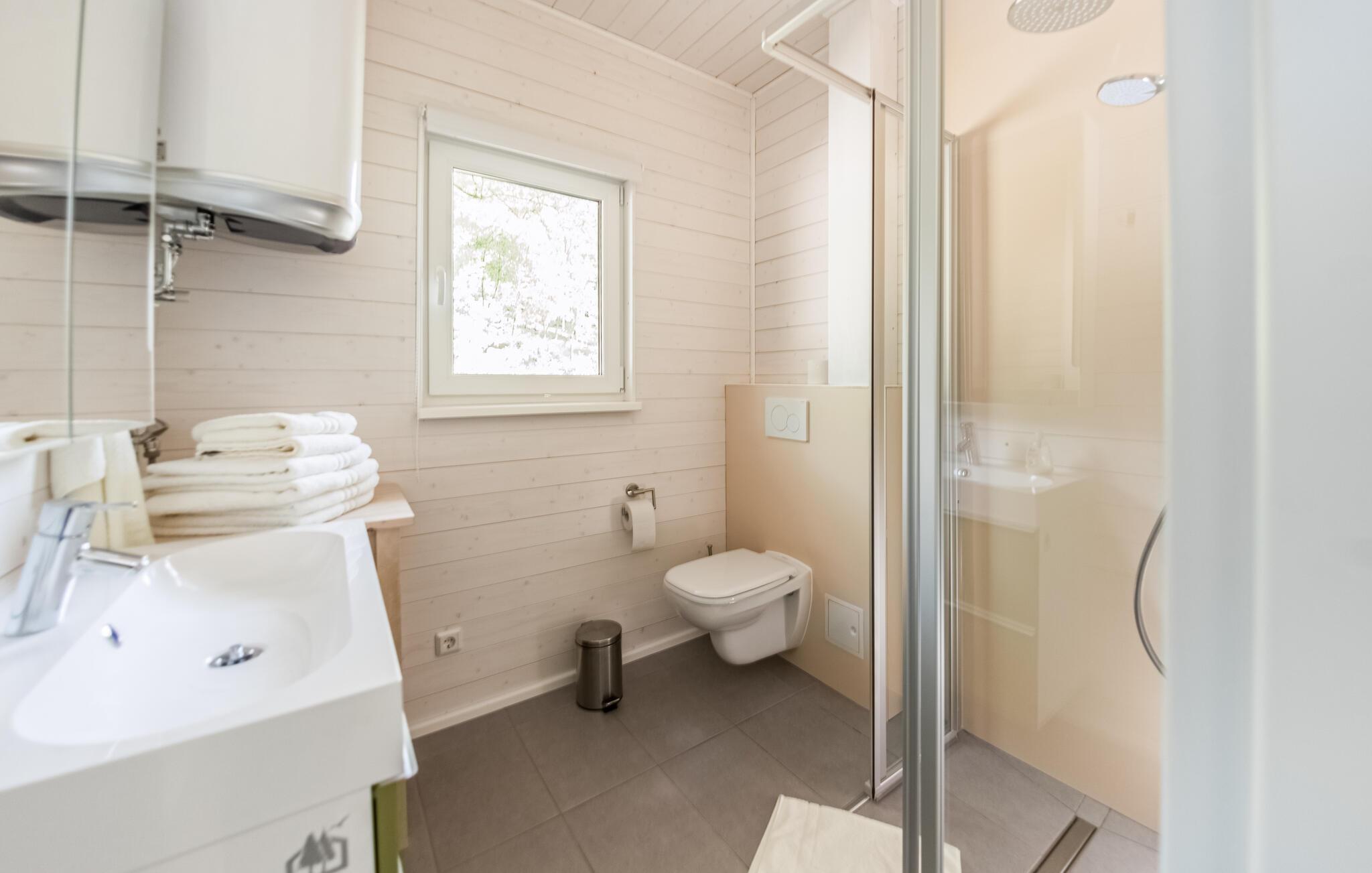 Dette moderne og komfortable feriehus har en absolut idyllisk beliggenhed. Glæd jer til et lille stykke paradis i ferieparken midt i Thüringer Wald. Efter en skøn gåtur i spektakulær natur kan I varme op i saunaen og nyde en vidunderlig udsigt over det maleriske omgivende landskab, mens I spiser sammen eller slapper af i sofaen, mens flammerne knitrer stille og roligt i pejsen.