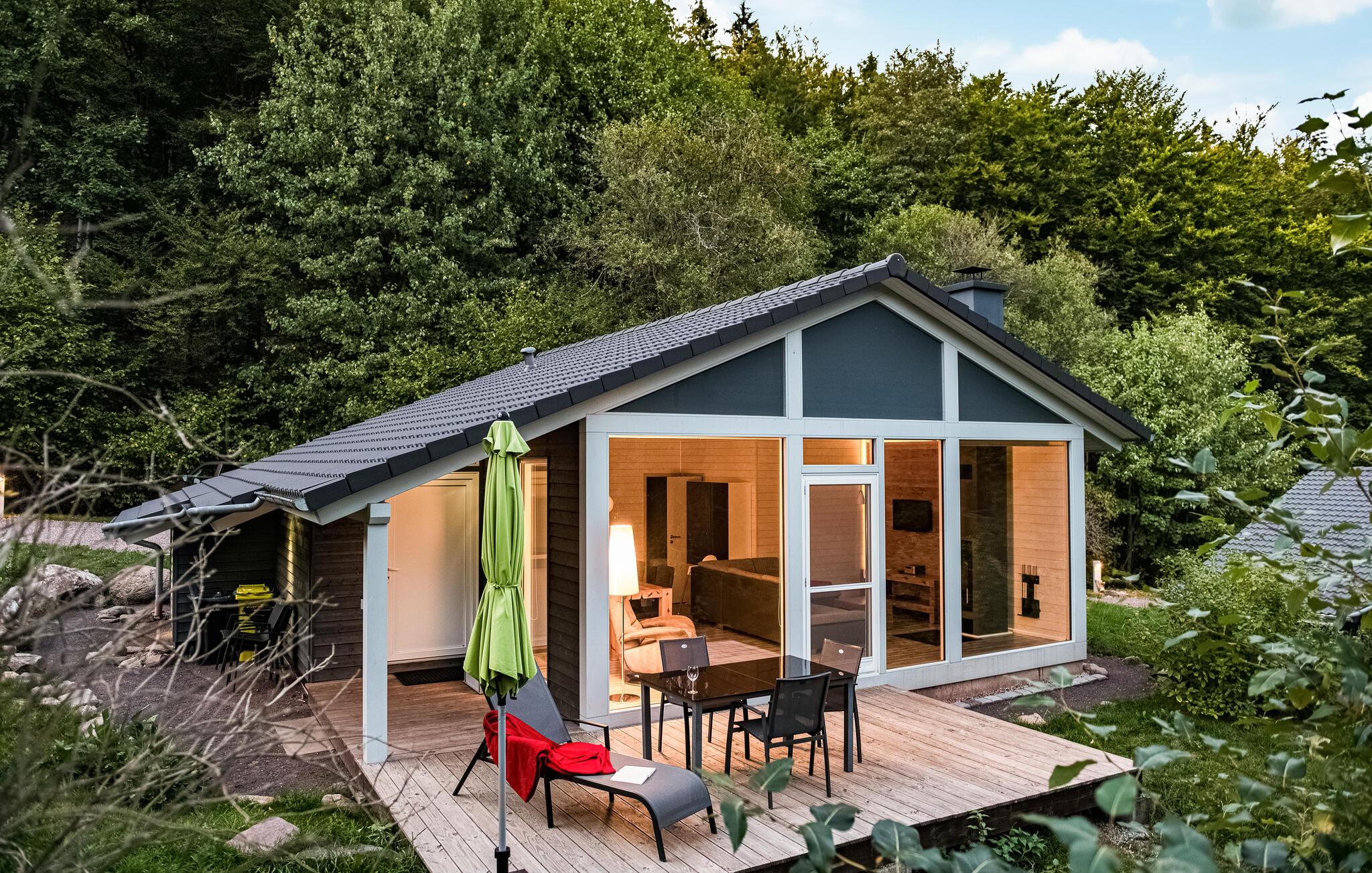 Dette moderne og komfortable feriehus har en absolut idyllisk beliggenhed. Glæd jer til et lille stykke paradis i ferieparken midt i Thüringer Wald. Efter en skøn gåtur i spektakulær natur kan I varme op i saunaen og nyde en vidunderlig udsigt over det maleriske omgivende landskab, mens I spiser sammen eller slapper af i sofaen, mens flammerne knitrer stille og roligt i pejsen.