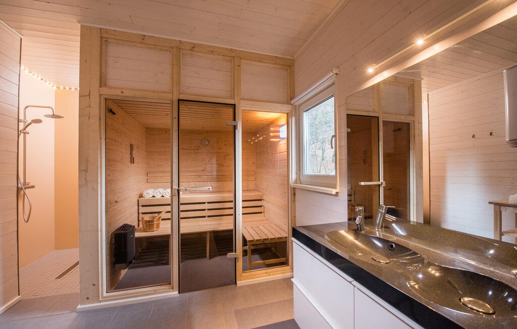 Dette moderne og komfortable feriehus har en absolut idyllisk beliggenhed. Glæd jer til et lille stykke paradis i ferieparken midt i Thüringer Wald. Efter en skøn gåtur i spektakulær natur kan I varme op i saunaen og nyde en vidunderlig udsigt over det maleriske omgivende landskab, mens I spiser sammen eller slapper af i sofaen, mens flammerne knitrer stille og roligt i pejsen.