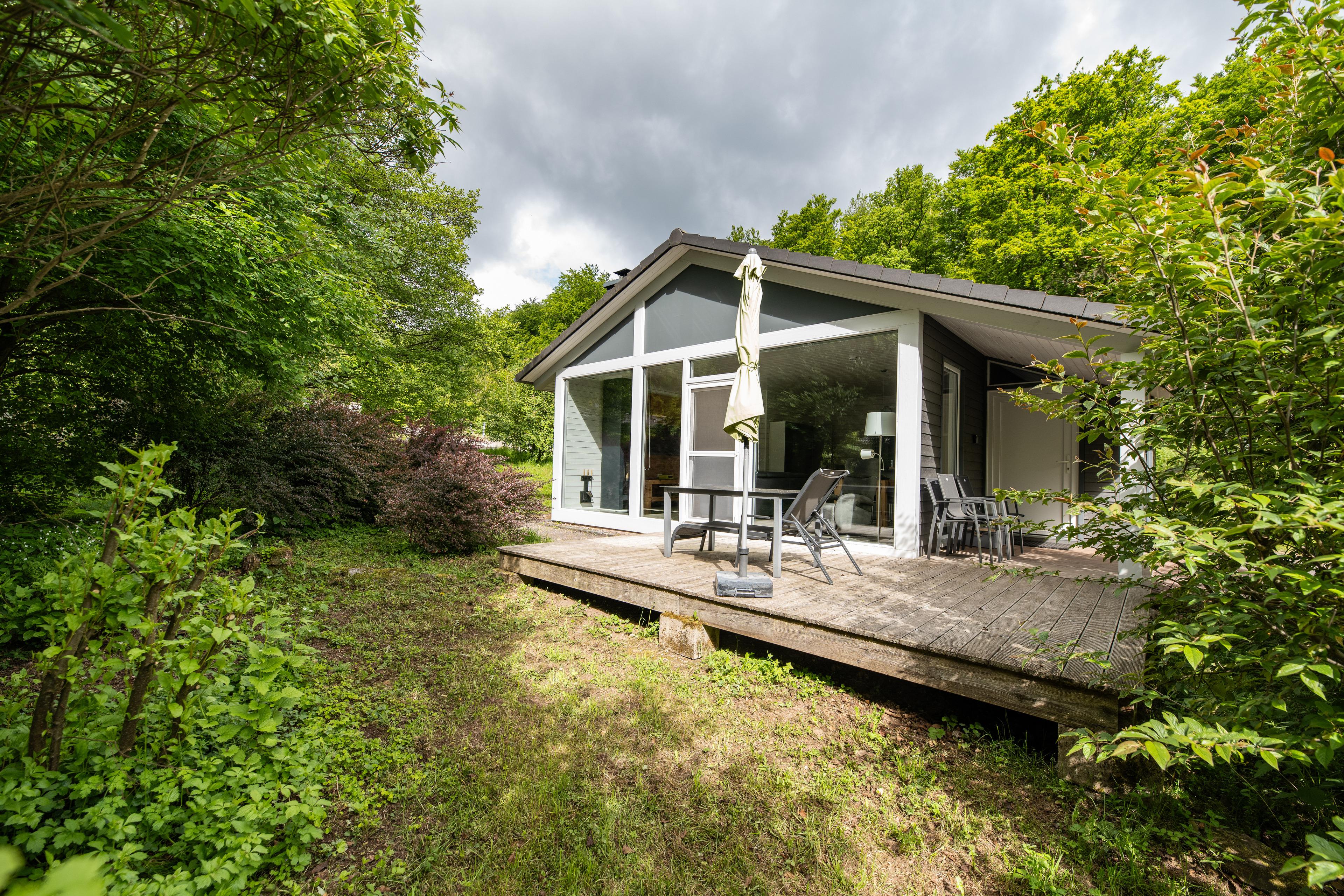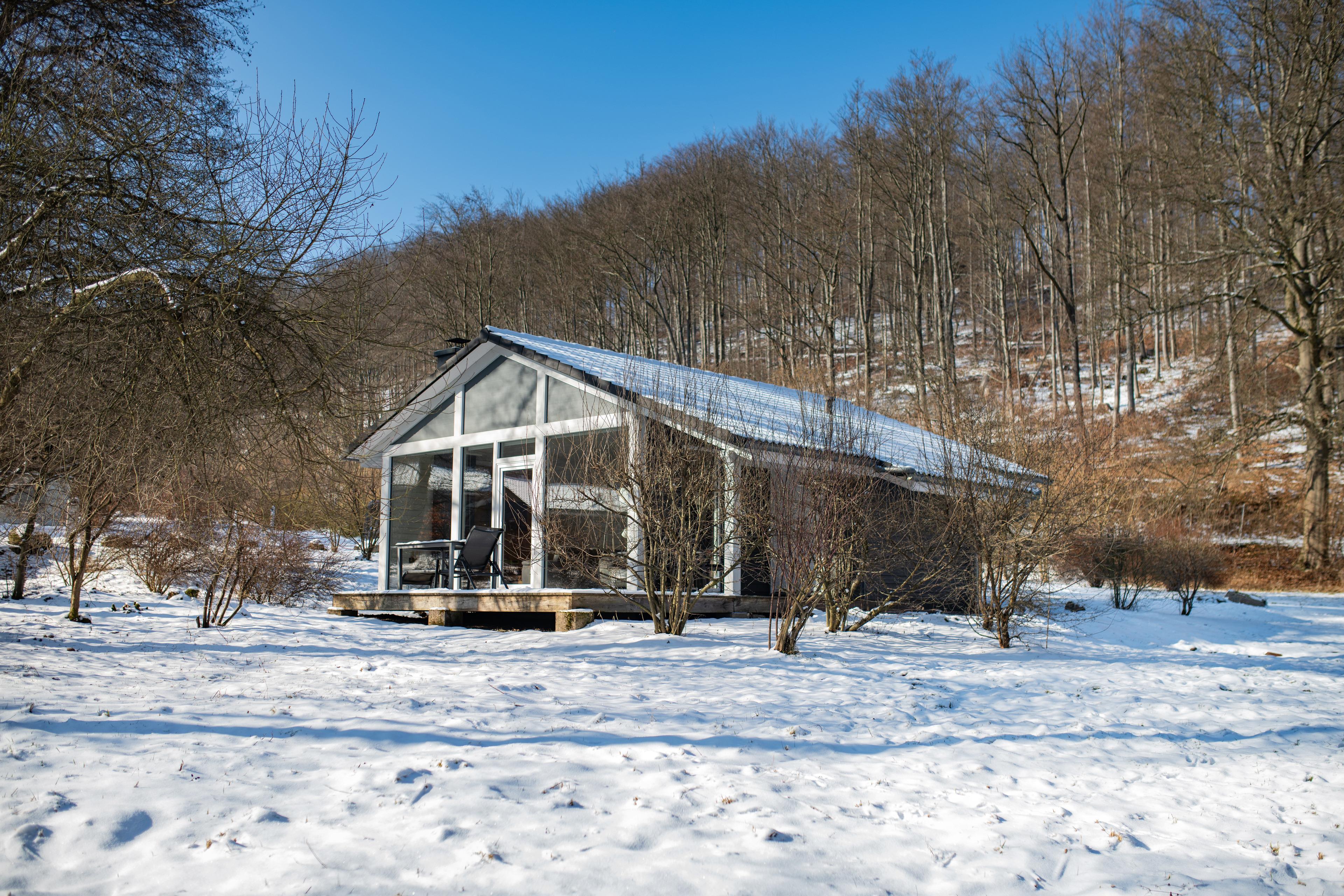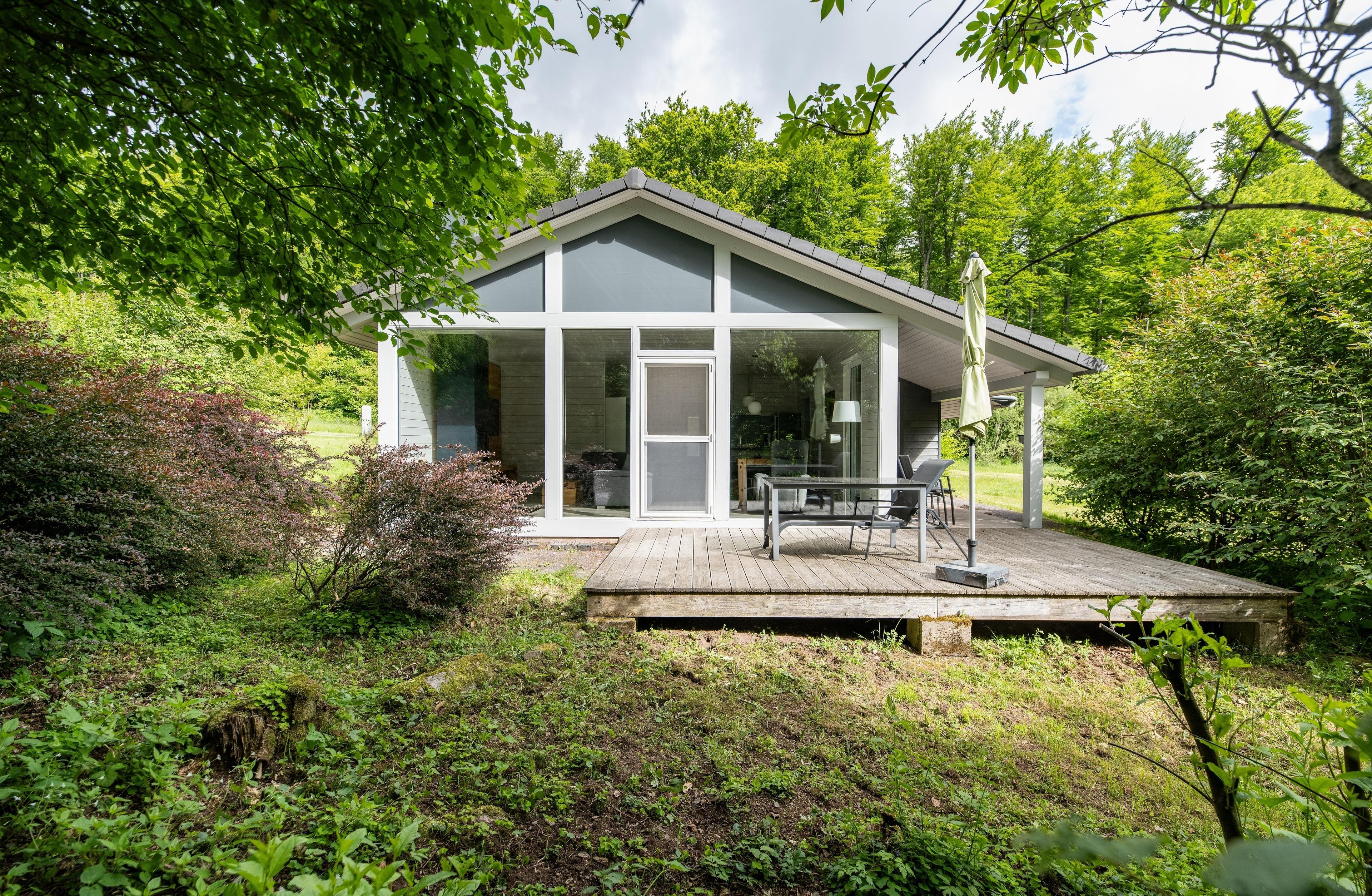Das Ferienhaus mit einem lichtdurchfluteten offenen Wohn- und Küchenbereich, einem Schlafzimmer und einem Wellness-Bad mit Sauna bietet Ihnen auf 61 Quadratmetern großzügigen Platz für 2 Personen. Die 7 Meter breite Glasfront lässt die Natur beim Essen oder Relaxen teilhaben. In der kalten Jahreszeit vollendet das knisternde Kaminfeuer das Urlaubsfeeling.