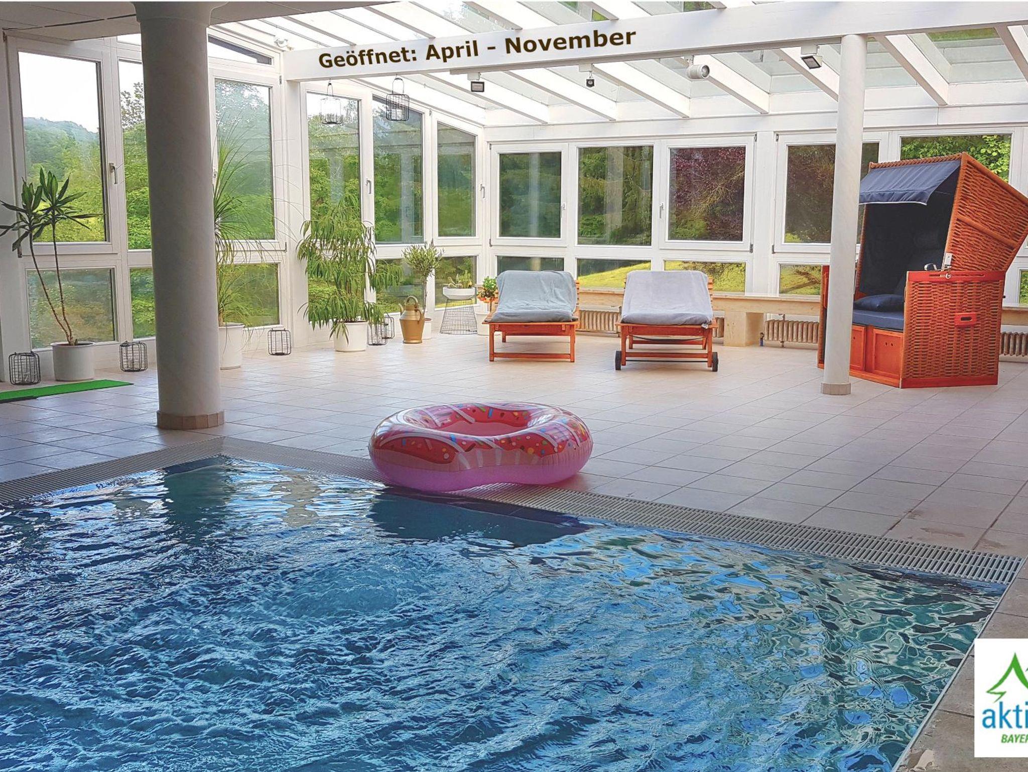 Von Mitte April bis Anfang November hat unser Indoor-Pool für noch mehr Wohlfühl-Erlebnis geöffnet. Fast ein Infinity-Pool! 9-Meter-Becken für ein richtiges Schwimmerlebnis. Gegenstrom-Massage-Anlage. Lichtdurchfluteter Liegenbereich mit phantastischen Ausblick. Auch wenn das Wetter mal nicht ganz so mitspielt der bester Ort zum relaxen.