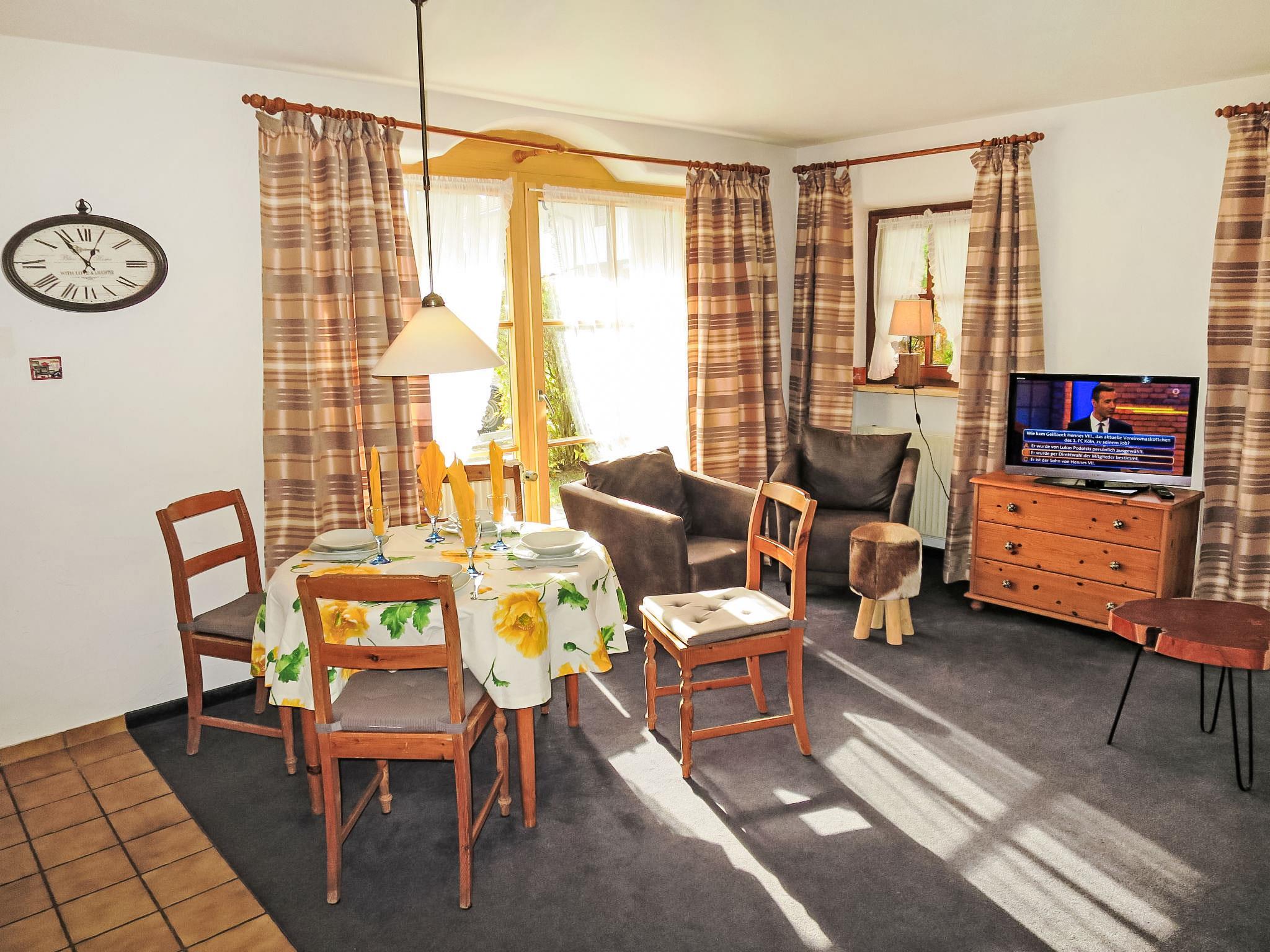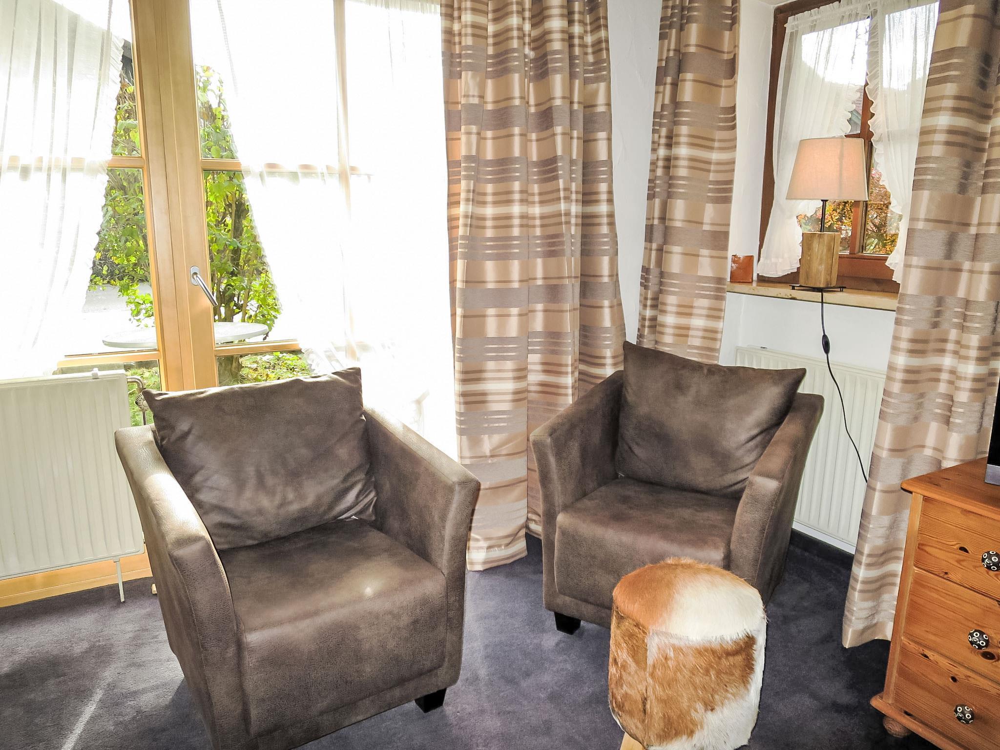 "Wohnung 4 (Am Sonneneck)", 2-room apartment 50 m2, on the ground floor. Beautiful and cosy furnishings: living/dining room with 1 double sofabed (160 cm, length 200 cm), cable TV (flat screen), radio. Exit to the terrace. 1 double bedroom. Exit to the terrace. Kitchenette (dishwasher, 4 ceramic glass hob hotplates, electric coffee machine, combination microwave). Shower/WC. Terrace furniture. Facilities: telephone (extra), children's high chair, baby cot, hair dryer. Internet (WiFi, free). Please note: non-smokers only. Smoke alarm.