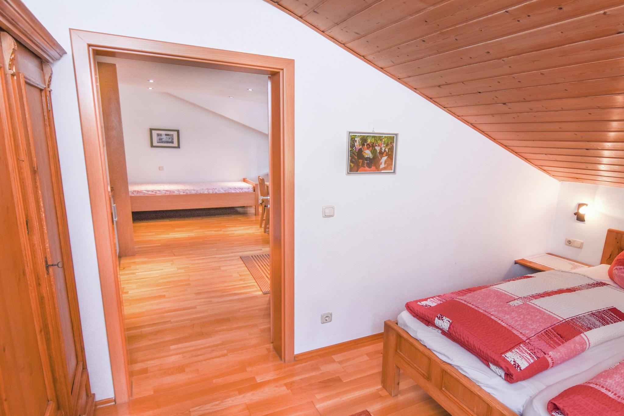 Beliggende blandt frodige grønne bakker tilbyder denne charmerende bjergsidelejlighed i Ruhpolding et fredeligt tilflugtssted for op til tre gæster. Med en betagende udsigt over de omkringliggende tinder og nærhed til naturen - kun 100 meter fra en sø, flod og skov - er det perfekt til familier, der søger ro og udendørs sjov. Det berømte skiområde Steinplatte/Winklmoos og langrendsparadiset i Three Lakes Region henvender sig til vintersportelskere, mens nærliggende pubber, ridning, tennis, golf og vandsport lover nydelse året rundt. Dette kæledyrsvenlige ophold inkluderer adgang til en dam til fiskeri, en sauna mod betaling og en fælles pool til afslapning. Gæsterne kan slappe af på den private terrasse eller balkon og nyde den fælles have med grill, bar og høj stol. Parkering og legeredskaber på stedet øger bekvemmeligheden og komforten. Offentlig transport er kun 100 meter væk, med togstationen 8 km og lufthavnen 40 km fra ejendommen - hvilket gør den både naturskøn og tilgængelig.