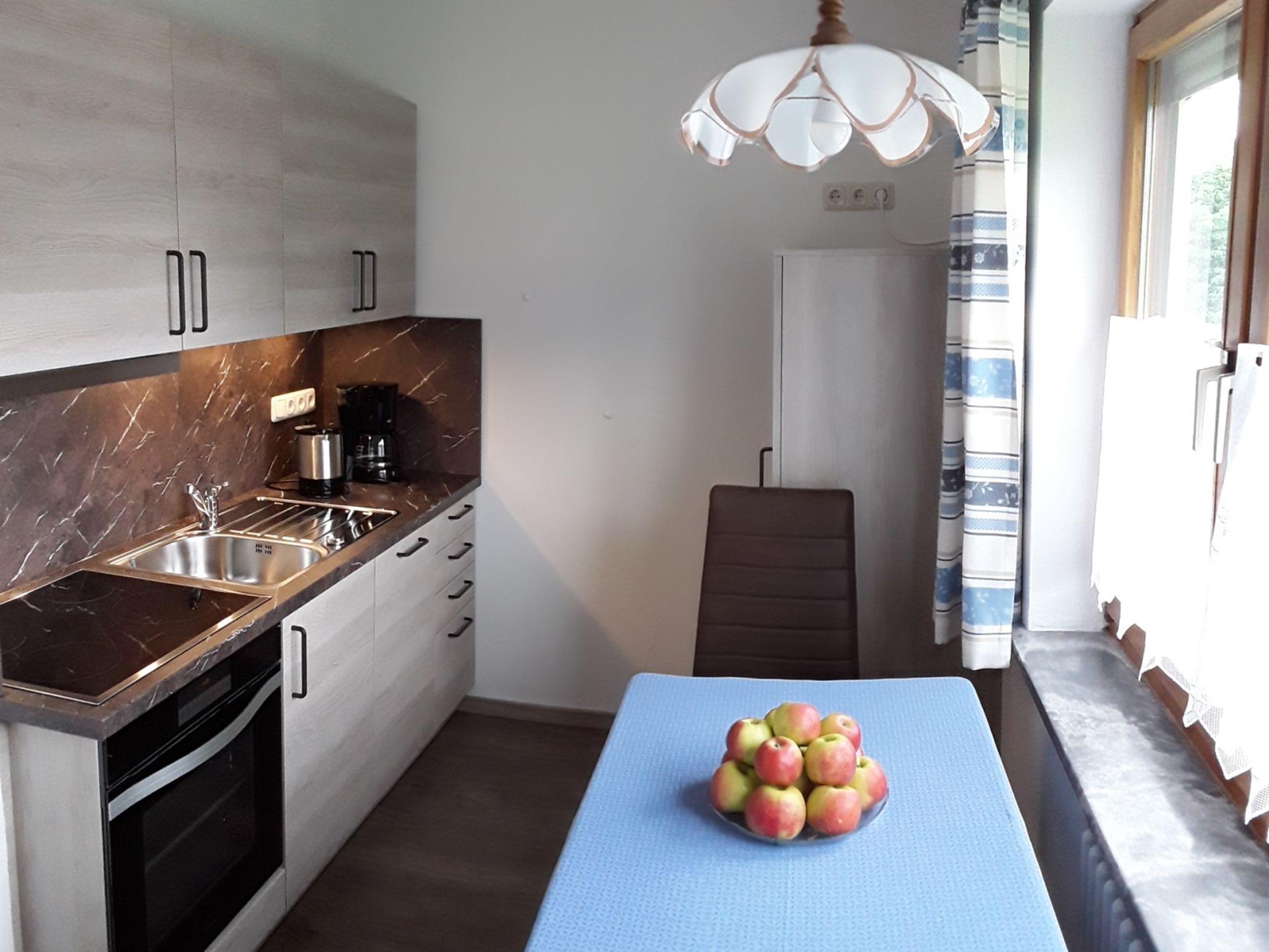 Gepflegte Ferienwohnung (50qm) mit Balkon und getrenntem Wohn/Schlafraum im ersten Obergeschoss. Schlafzimmer mit Doppelbett und rückengerechten Matratzen, Wohnzimmer mit SAT-TV, Radio und DVD-Player. Kostenloses WLAN. Separate Küche neu seit April 2019, ausgestattet mit Spülmaschine, Induktionskochfeld und Backofen, Kühlschrank mit Gefrierfach, Badezimmer mit Dusche, Fön, Handtücher und Toilettenartikel. Kinderbett und Hochstuhl auf Wunsch. Anreise von 15:00 - 18:00 Uhr und Abreise 06:00 - 10:00 Uhr. Sollte die Anreise nach 18:00 Uhr kontaktieren Sie uns bitte.