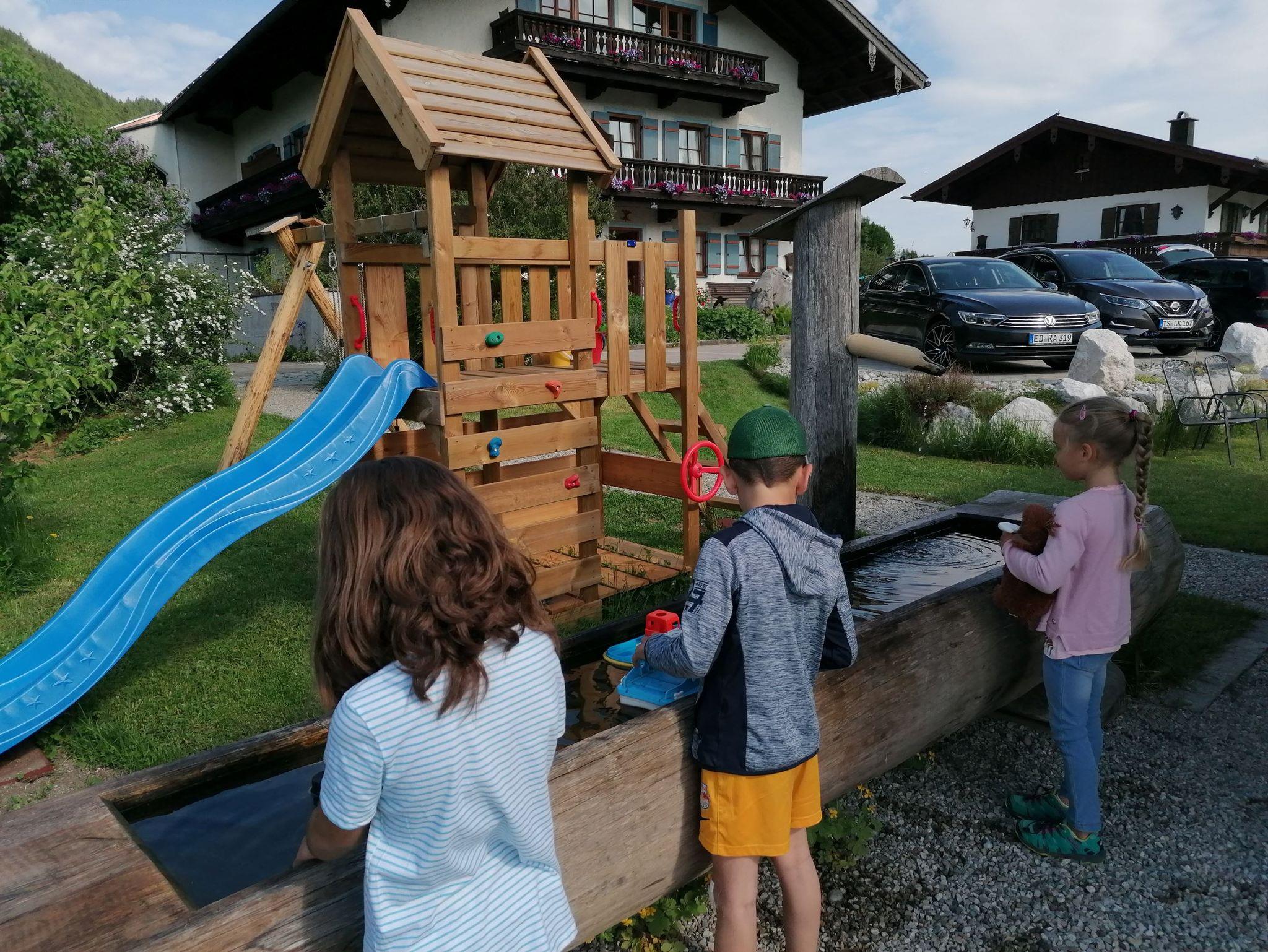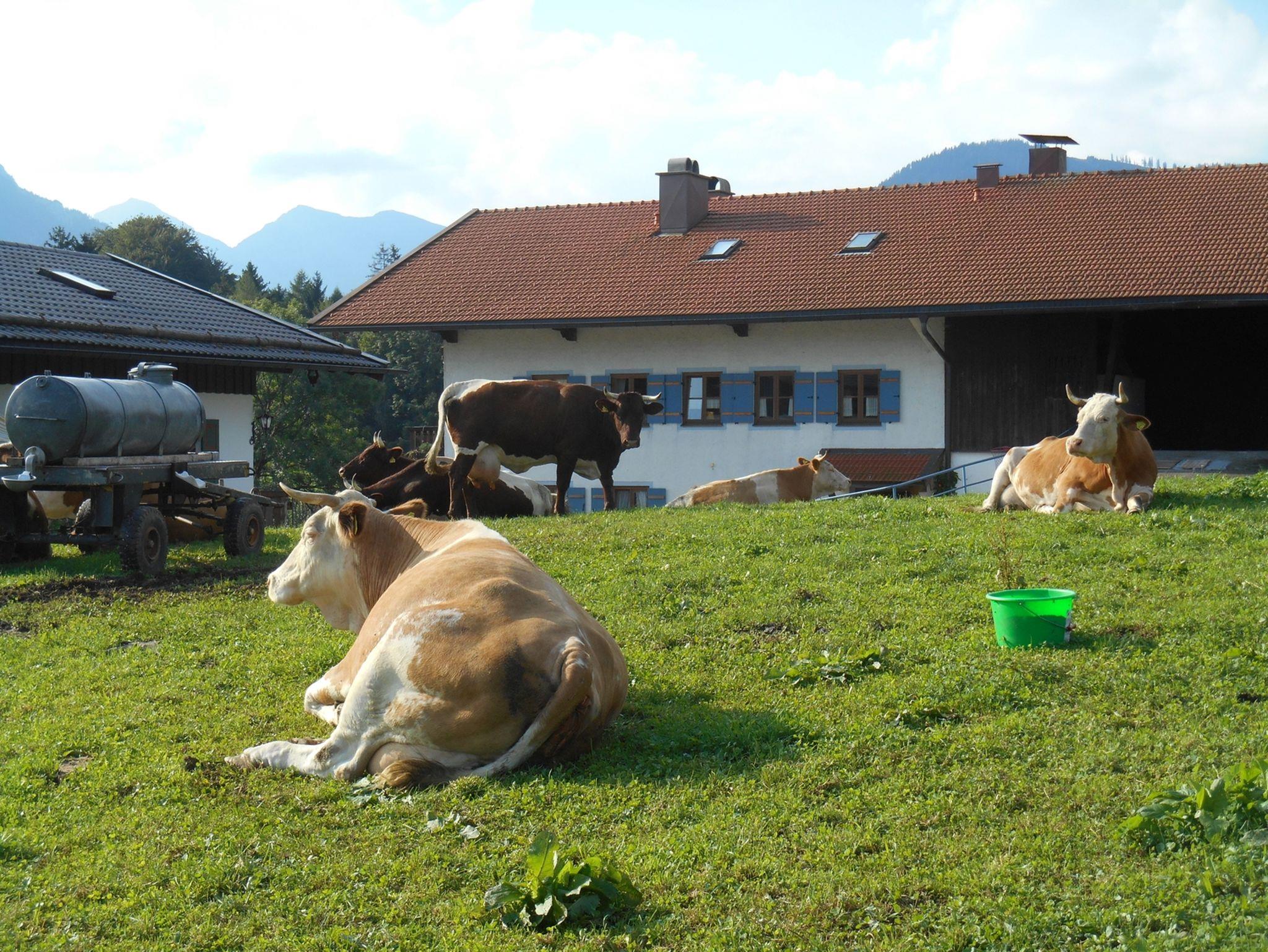 Erlebbarer Ruhpoldinger Bio-Bauernhof inmitten grüner Wiesen mit freiem Blick auf unsere Berge. Kinderspielplatz, Trampolin, Kinderfuhrpark und frische Milch und Eier vom Hof runden Ihren Urlaub auf dem Bauernhof ab. Auf der sonnigen Terrasse unserer Almhütte schmeckt die Brotzeit besonders gut. Haben Sie schon einmal beim Melken zugeschaut? Bei uns trägt der Melkroboter Gummistiefel.