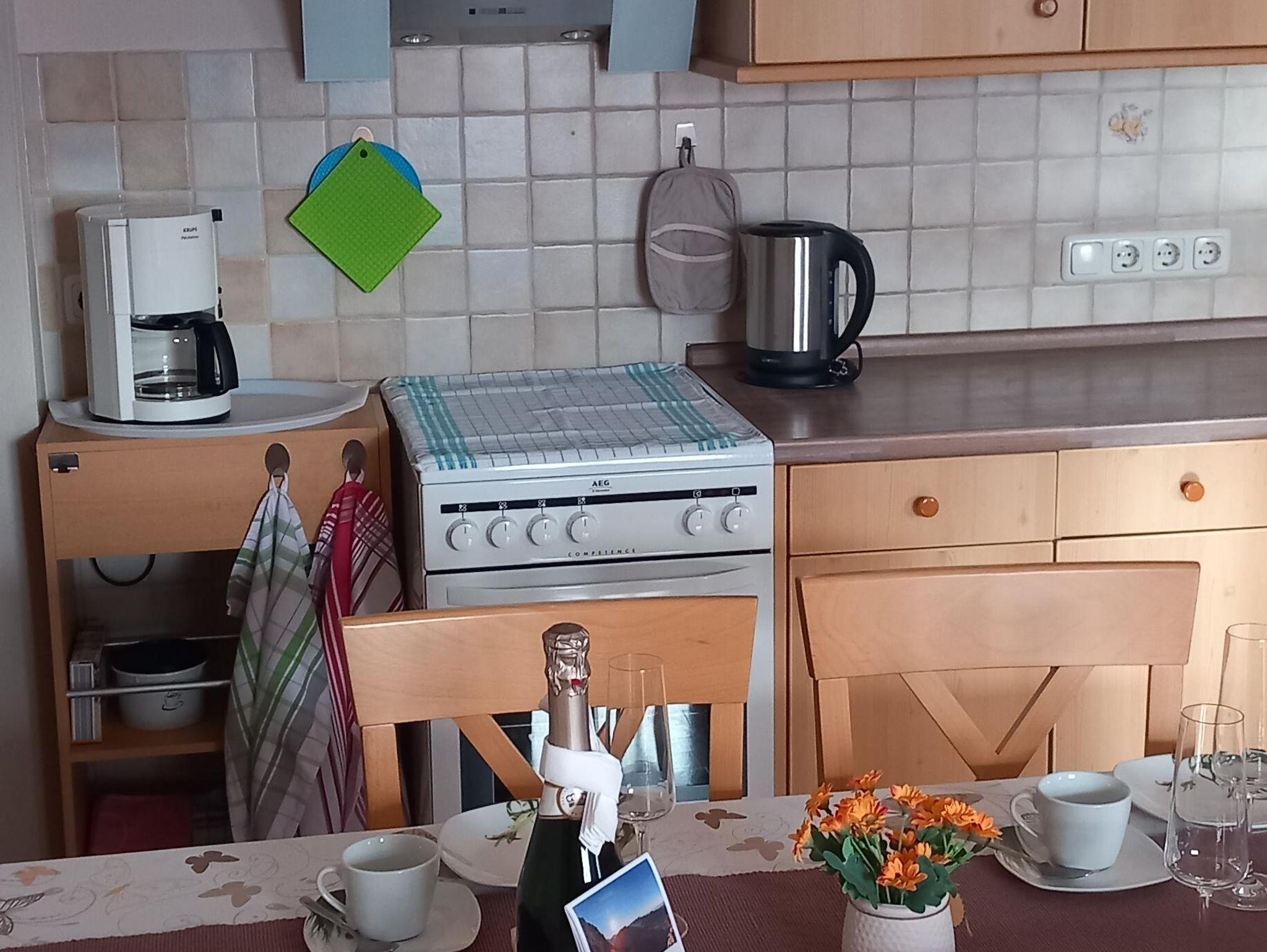 Unsere modern eingerichtete Ferienwohnung verfügt über insgesamt 65qm,für 2-4 Personen ausgelegt, mit 2 separaten Schlafzimmern. Die Küchenzeile ist mit Kühlschrank, E-Herd, Heißluftfritteuse, Kaffeemaschine, Wasserkocher, Toaster und allen benötigten Kochutensilien ausgestattet. Esstisch bei Bedarf mit Kinderhochstuhl. Im Wohnzimmer befindet sich eine Rundcouch, Sat-TV, Radio, CD und DVD-Player. Das Bad ist mit Dusche/WC, Fön, Handtücher und Toilettenartikel. Ein geräumiger Südbalkon mit Blick auf die umliegenden Berge lädt zum Entspannen ein. Im Sommer gibt es die Möglichkeit zu Grillen. Es gibt einen Parkplatz am Haus und einen Abstellplatz für die Skier. 4 Minuten zur Loipe. Zug und Busverbindungen in unmittelbarer Nähe. Für unsere Gäste bieten wir Hotsplots-WLAN an.