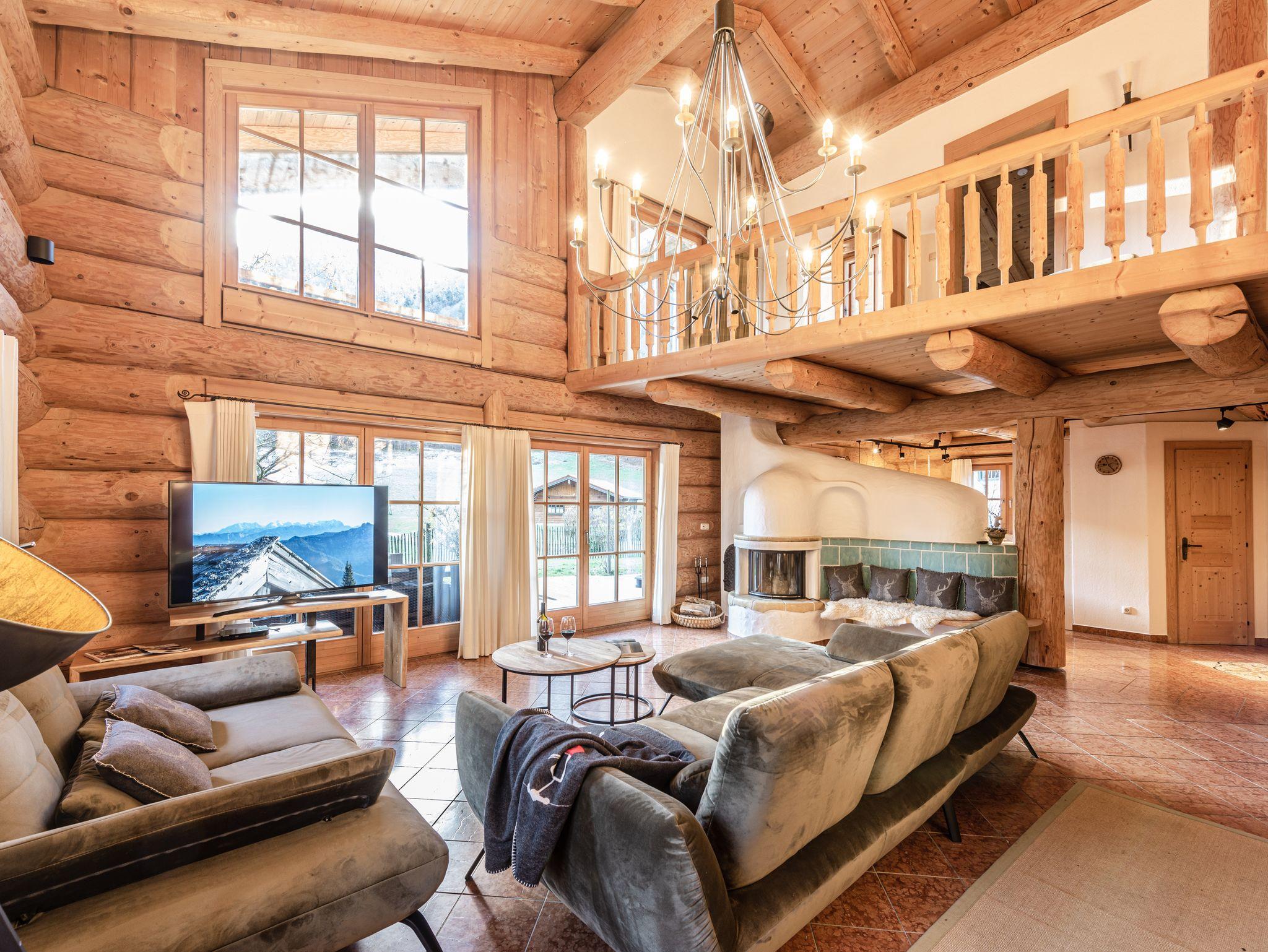 Alpenchalets & Suiten Beim Waicher inkl. Chiemgaukarte, Luxus Chalet Naturstammhaus, 165qm, 3 Schlafzimmer, 2 Badezimmer, Kamin, Terrasse mit Jacuzzi