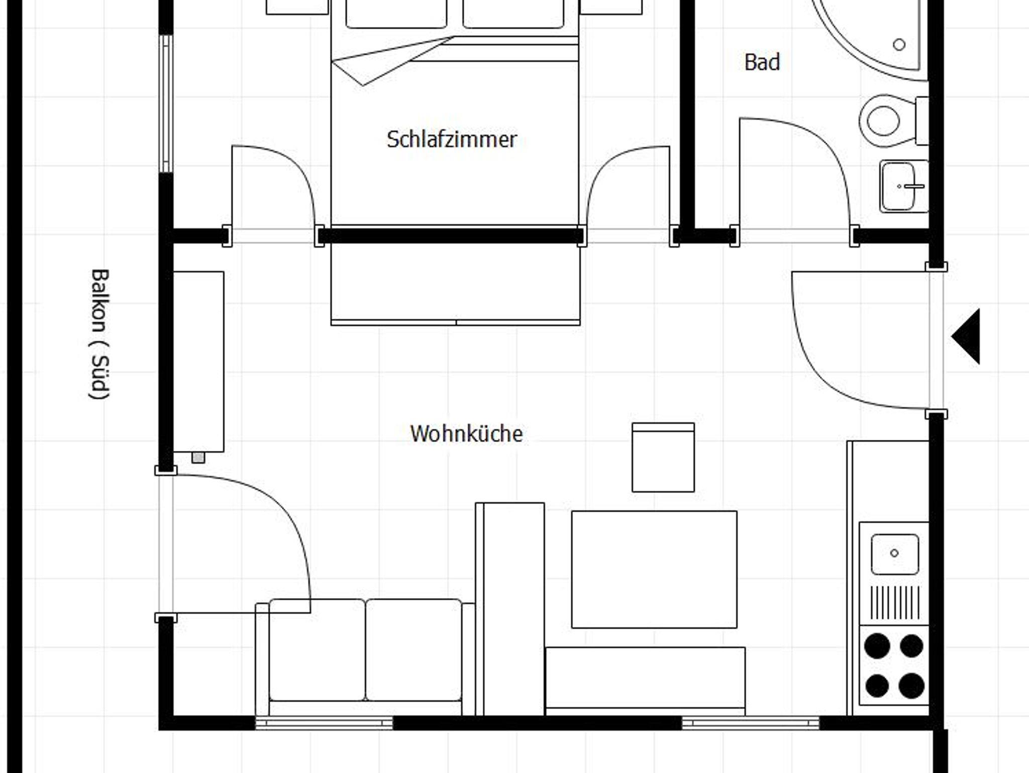 • Ein Schlafzimmer (Doppelbett 180 x 200 cm mit höhenverstellbarem Lattenrost) und ein Wohnzimmer (mit einer Schlafcouch mit einer Liegefläche von ca. 160 x 190 cm)