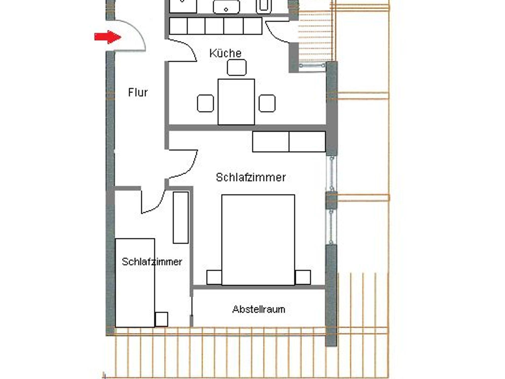Nichtraucher-Wohnung.Wohnzimmer mit Couchgarnitur, Kabel-TV und Internetanschluss. Küche mit Backofen und Spülmaschine sowie Essplatz. Ein Schlafzimmer mit Doppelbetten und ein Schlafzimmer (Kinderzimmer) mit einem Bett. Badezimmer mit Dusche und WC. Westbalkon.