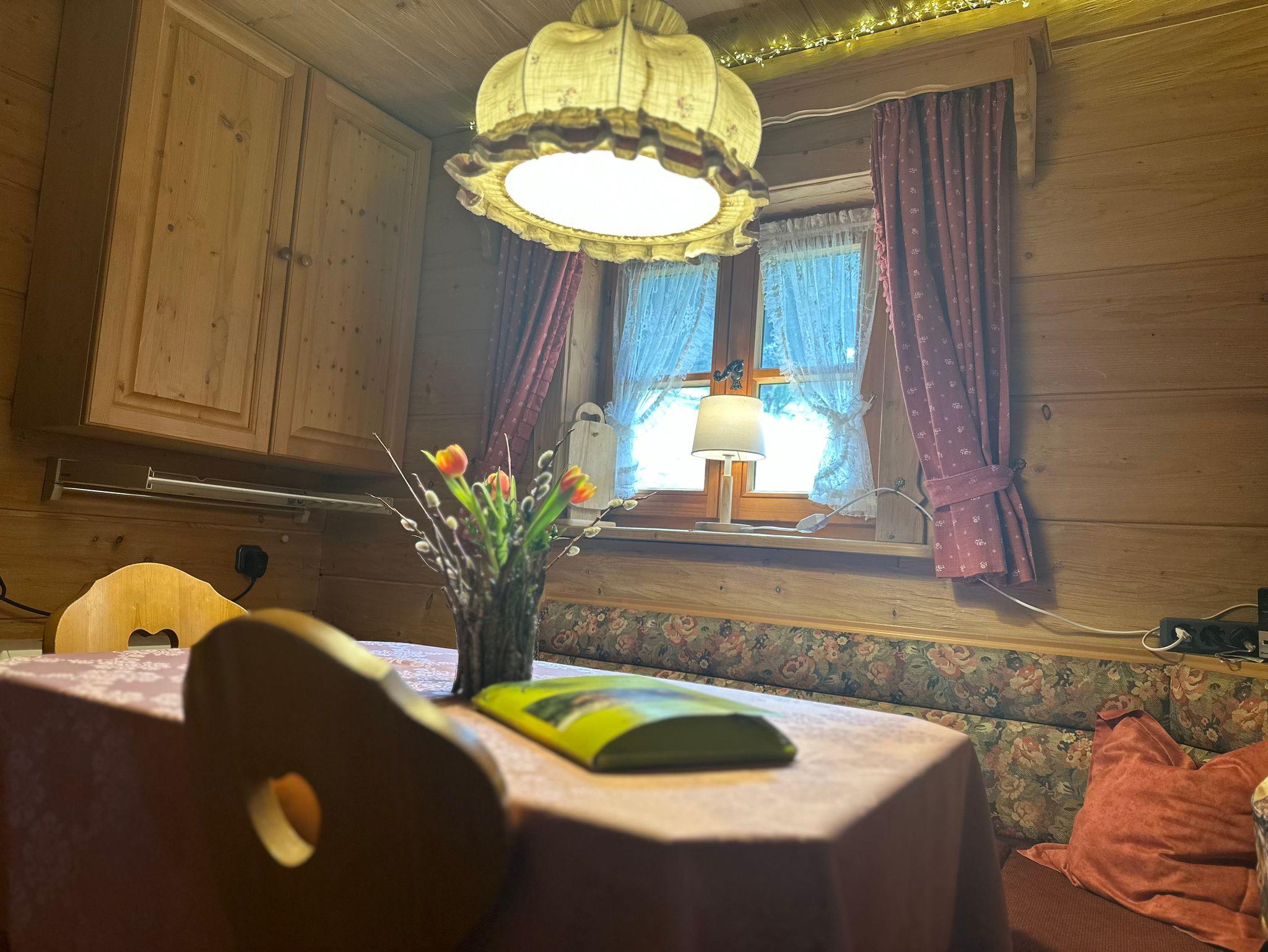 Der Wohn- und Schlafbereich verfügt über ein Doppelbett (180?×?200?cm), Digi-Sat-TV, WLAN und einen Nachtspeicherofen.