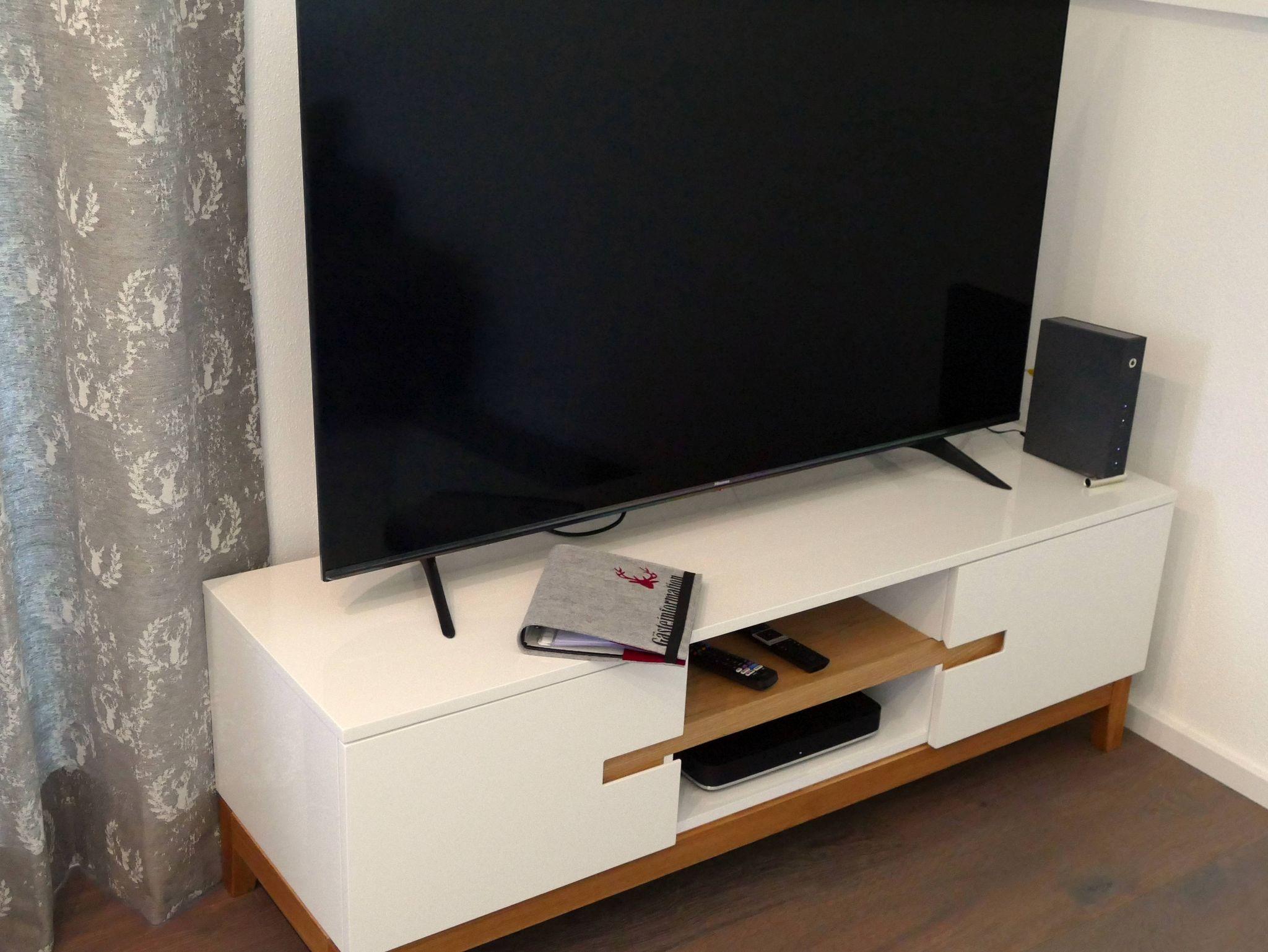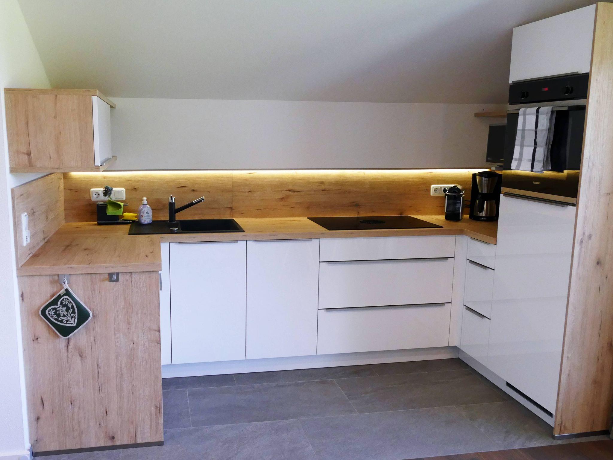 Die Ferienwohnung Wiesenglück hat ein separates kleines Schlafzimmer mit Doppelbett. Durch den Wohnraum im Dachgeschoss mit integrierter Küche entsteht ein offenes Raumgefühl, bei dem man sich gleich wohlfühlt. Die Küche ist mit hochwertigen Markengeräten einschließlich Geschirrspüler, Mikrowelle, Backofen etc. ausgestattet. Neben der Kaffeemaschine steht Ihnen auch eine Nespresso-Maschine zur Verfügung. Um sich am Abend von den ereignisreichen Ausflügen zu erholen, machen Sie es sich auf dem bequemen (Schlaf-)Sofa gemütlich und nutzen den großen Flachbild-Fernseher. Kostenloses WLAN steht ebenfalls zur Verfügung. Das hochwertige Schlafsofa mit Matratze und Lattenrost (140 x 200 cm) erlaubt es auch einmal zu Dritt oder mit den Kindern Urlaub zu machen. Vom großen Balkon genießen Sie einen wunderbaren freien Blick auf die umliegenden Wiesen. Durch die Nord/West-Lage bleibt es hier auch im Sommer angenehm kühl. Für ein gutes Raumklima sorgt die Kombination aus Fußbodenheizung und dezentraler Lüftungsanlage.