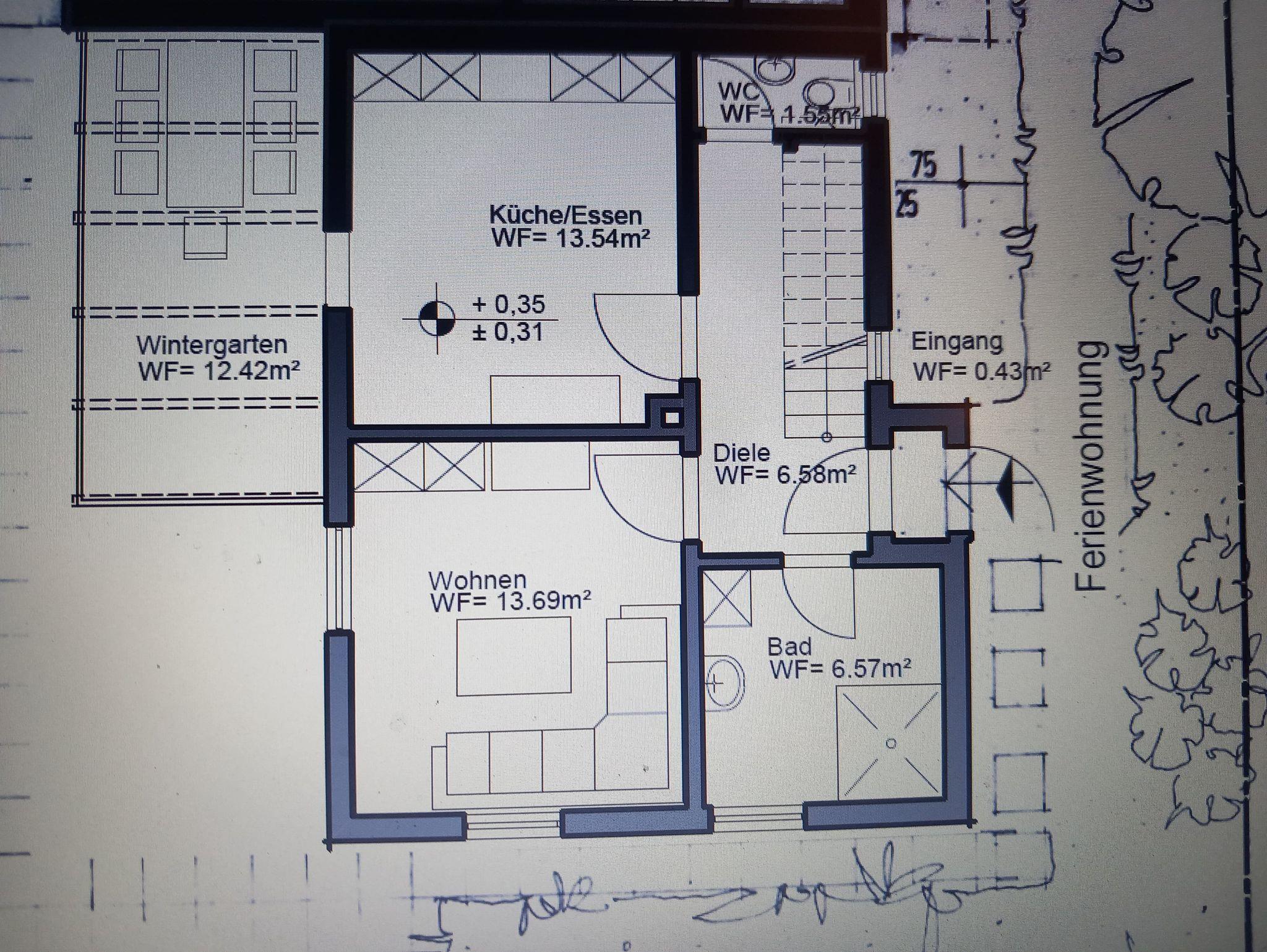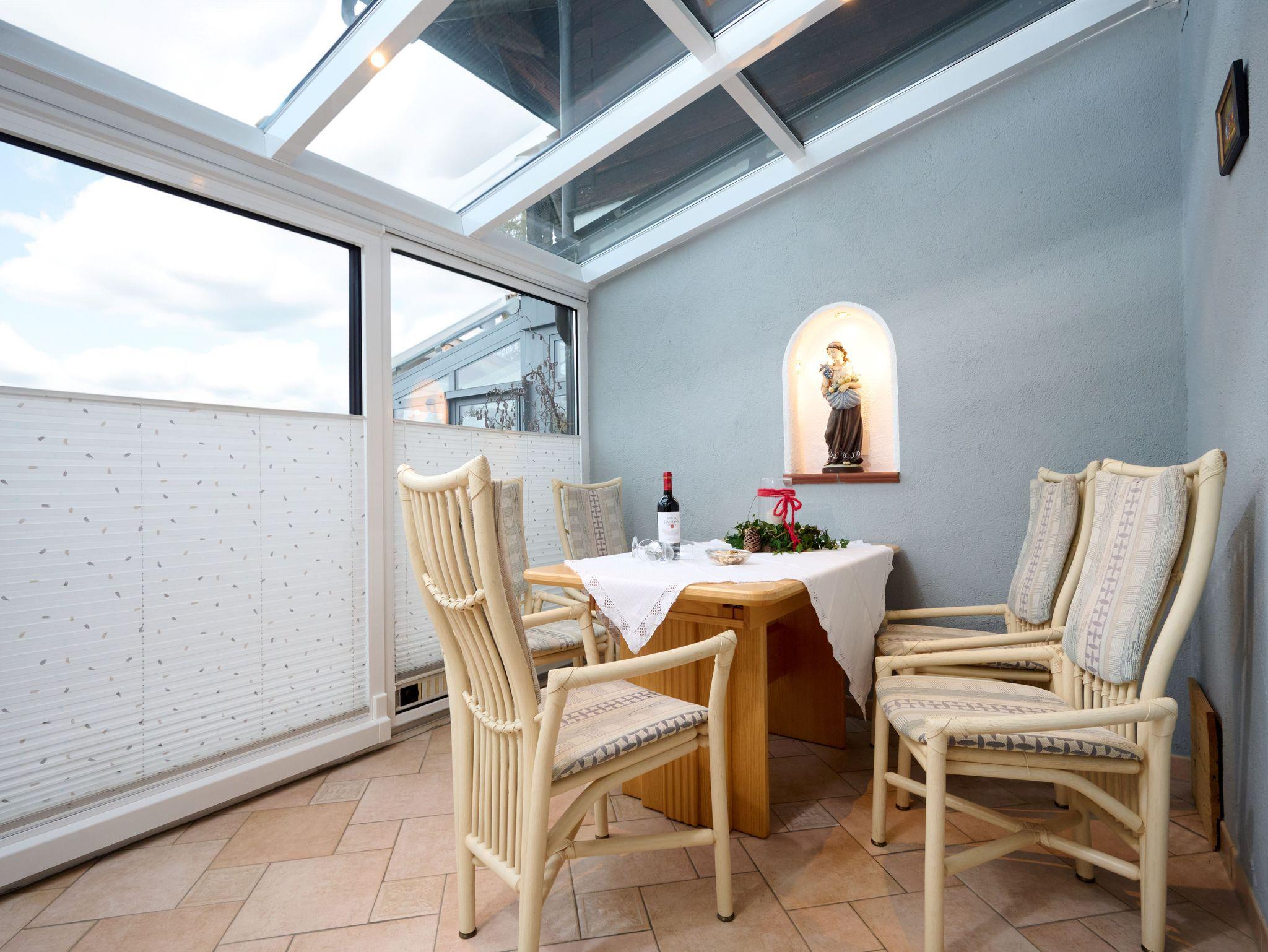 Vier-Zimmer-Ferienwohnung für 2-4 Personen, mit separatem Eingang. Wohnzimmer mit Couchgarnitur, Farbfernsehgerät. Zwei Schlafzimmer mit Doppelbett . Badezimmer mit Dusche, Waschbecken, Waschmaschine, 2 Gäste WC´s. Komplett eingerichtete und ausgestattete Küche mit Spülmaschine und Mikrowelle. Ein Kachelofen mit Herdplatte befindet sich in der Küche. Wintergarten. Safe. Balkon. Terrasse. Ca.95 qm Wohnfläche.