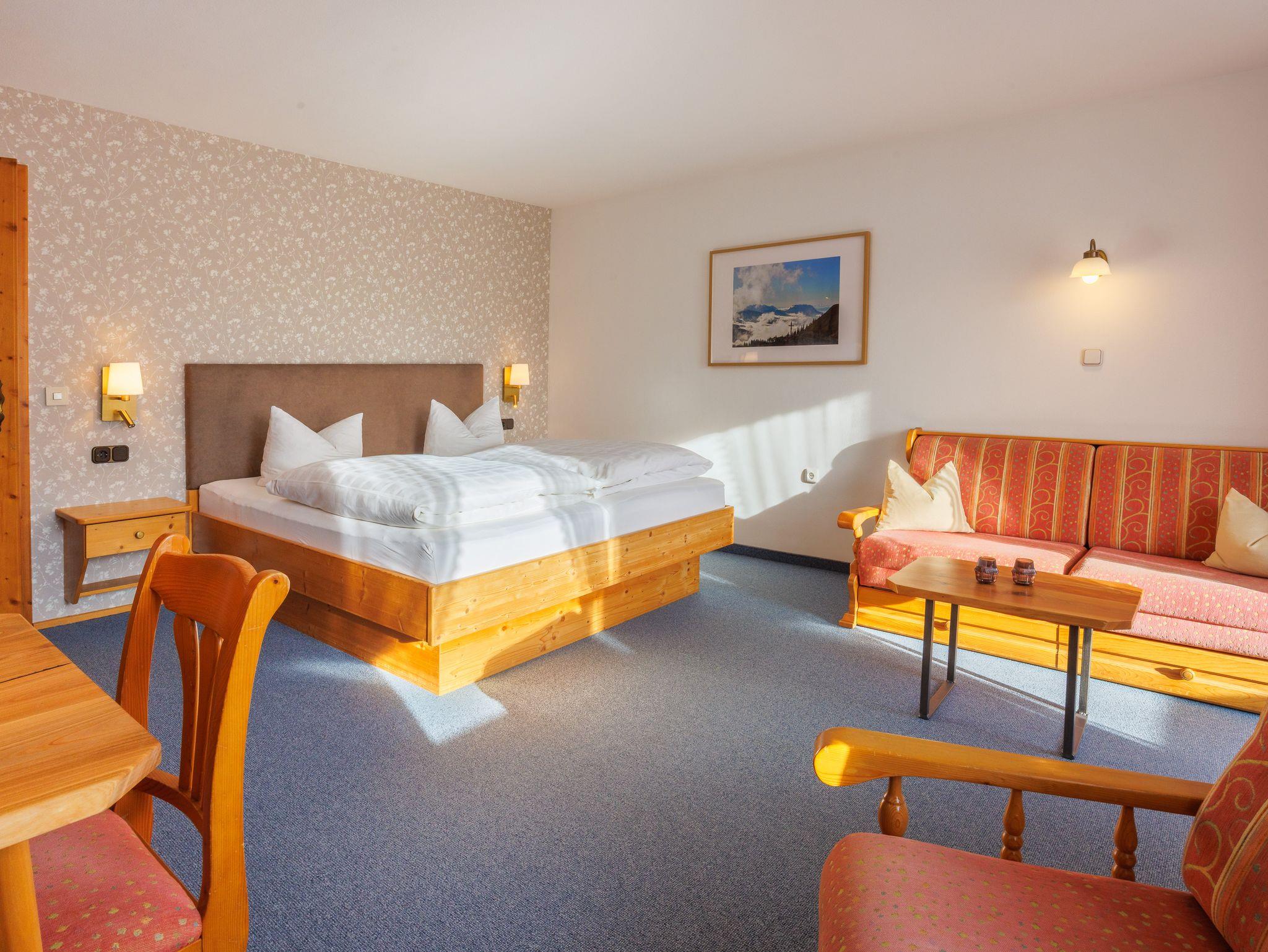 Es erwarten Sie gepflegte, gemütliche Ferienwohnungen bzw. Appartements in verschiedenen Größen, ausgestattet mit Dusche oder Bad/WC, Radio, Kabel-TV, Balkon mit Bergblick, Telefon und z. t. Kachelofen. Auf Wunsch Frühstücksbuffet mit Müsliecke. Ruhige zentrale Lage, 5 Gehminuten zum Ortszentrum. Parkplatz direkt am Haus, Tiefgaragenstellplatz auf Wunsch möglich. Gästehäuser inmitten einer großen Spiel- und Liegewiese. Loipen und Skilift ca. 300 m entfernt. Skiraum mit Schuhtrockner.