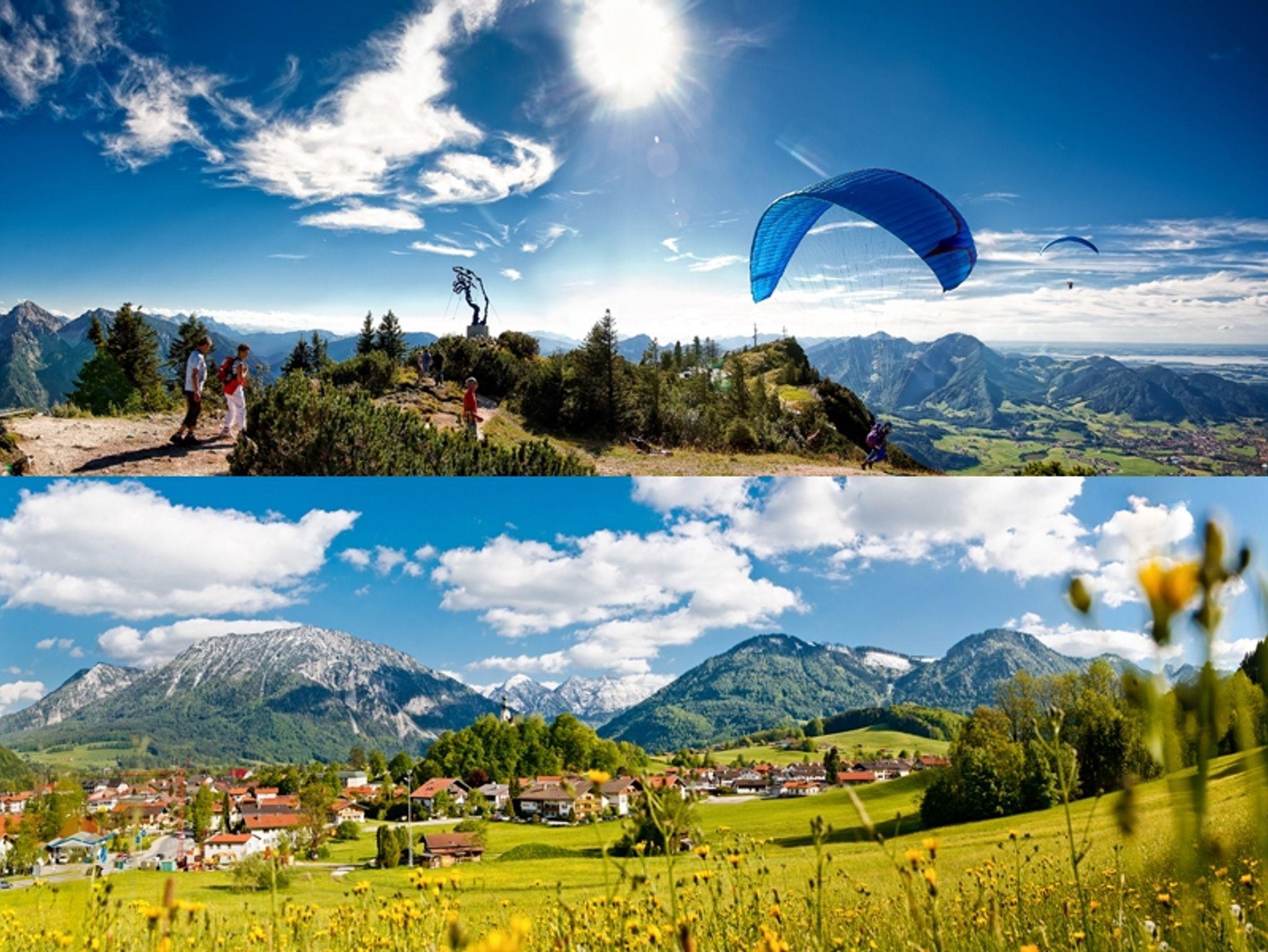 Komfortable ****Ferienwohnung (44qm) im 1. OG, mit 2 Balkonen (Ost - freier Rauschbergblick und Süd - freier Rauschberg- und Unternbergblick), Dusche/WC, Schlafzimmer mit Erker/Sitzgruppe und Flat-TV, Zimmersafe, Wohnzimmer mit Flat-TV, Schreibtisch, Essecke, EBK/Spülmaschine/Backofen/Ceranfeld, Highspeed Internet via Wlan, etc.