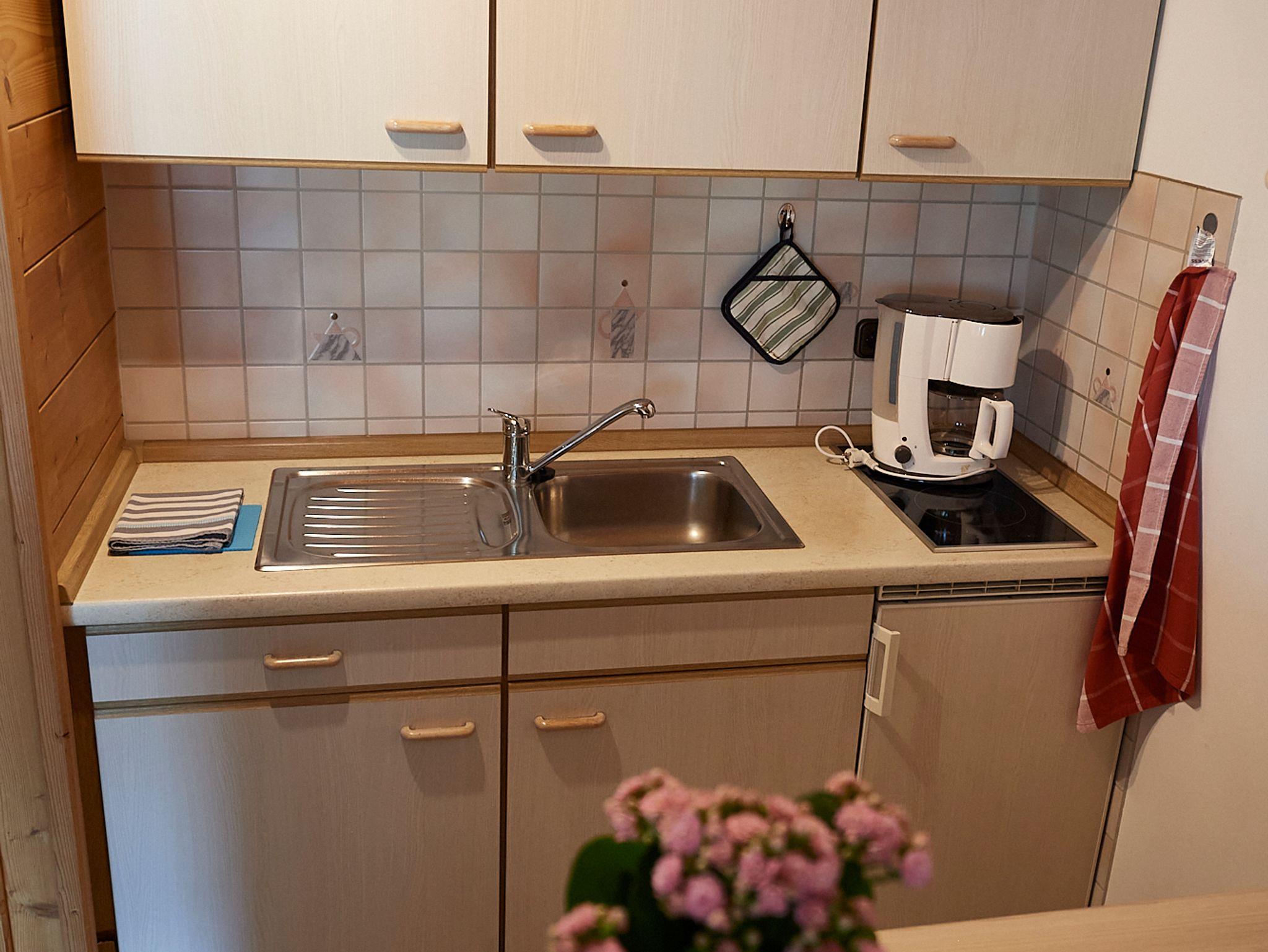 Unsere Ferienwohnung verfügt über Südbalkon mit Bergblick. Die Einrichtung ist hell und freundlich. In der Küche befindet sich ein Zwei-Platten-Induktionskochfeld, eine Kaffeemaschine, Wasserkocher und Eierkocher. Die Couch im Wohnbereich kann man ausziehen. Für Fahrräder steht Ihnen unser abschließbarer Geräte-Schuppen zur Verfügung. Parkmöglichkeit besteht unmittelbar am Haus.