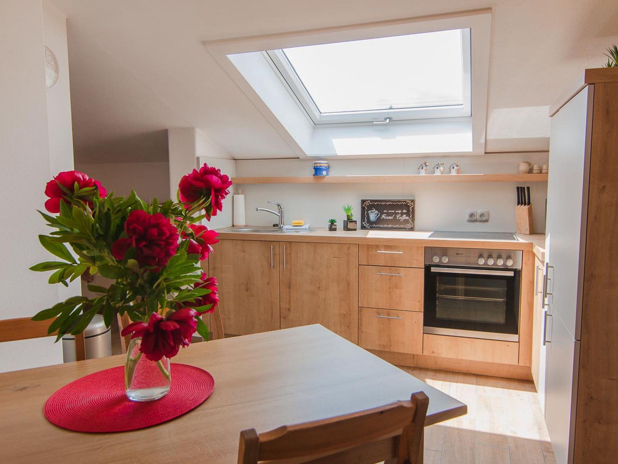 Diese komfortable und geschmackvoll eingerichtete 3-Sterne Wohnung befindet sich im 2. Stock in einem Haus mit insgesamt 8 Ferienwohnungen. Auf ca 60 qm Wohnfläche finden Sie alles was zu einem schönen Urlaub gehört. Ihre Wohnung verfügt über einen geschmackvoll eingerichteten Wohnraum, vom Wohnzimmer aus haben Sie einen direkten Zugang zu Ihrem eigenen Balkon mit Gartenmöbeln und einem Sonnenschirm, eine Wohnküche mit einer Küchenzeile und Essraum, ein separates Schlafzimmer mit einem Doppelbett (180 x 200cm) und einem 3-türigen Kleiderschrank sowie ein Badezimmer mit einer Badewanne / Dusche und WC.