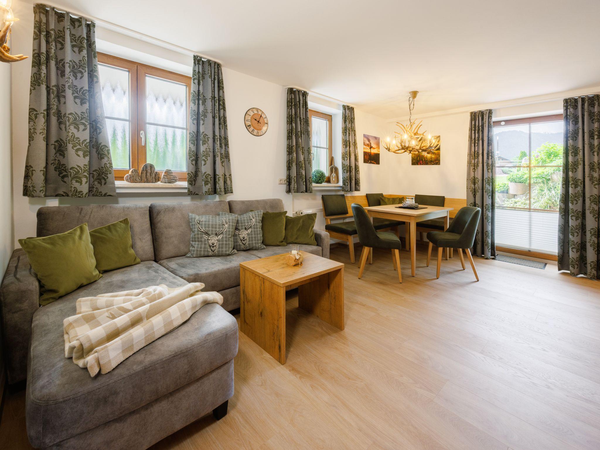 Lohener Hof - Ferienwohnungen Gastager, 1. Ferienwohnung Rauschberg, 55 qm, Terr., Küche, 1 Schlafzimmer, 1 Wohnschlafz.
