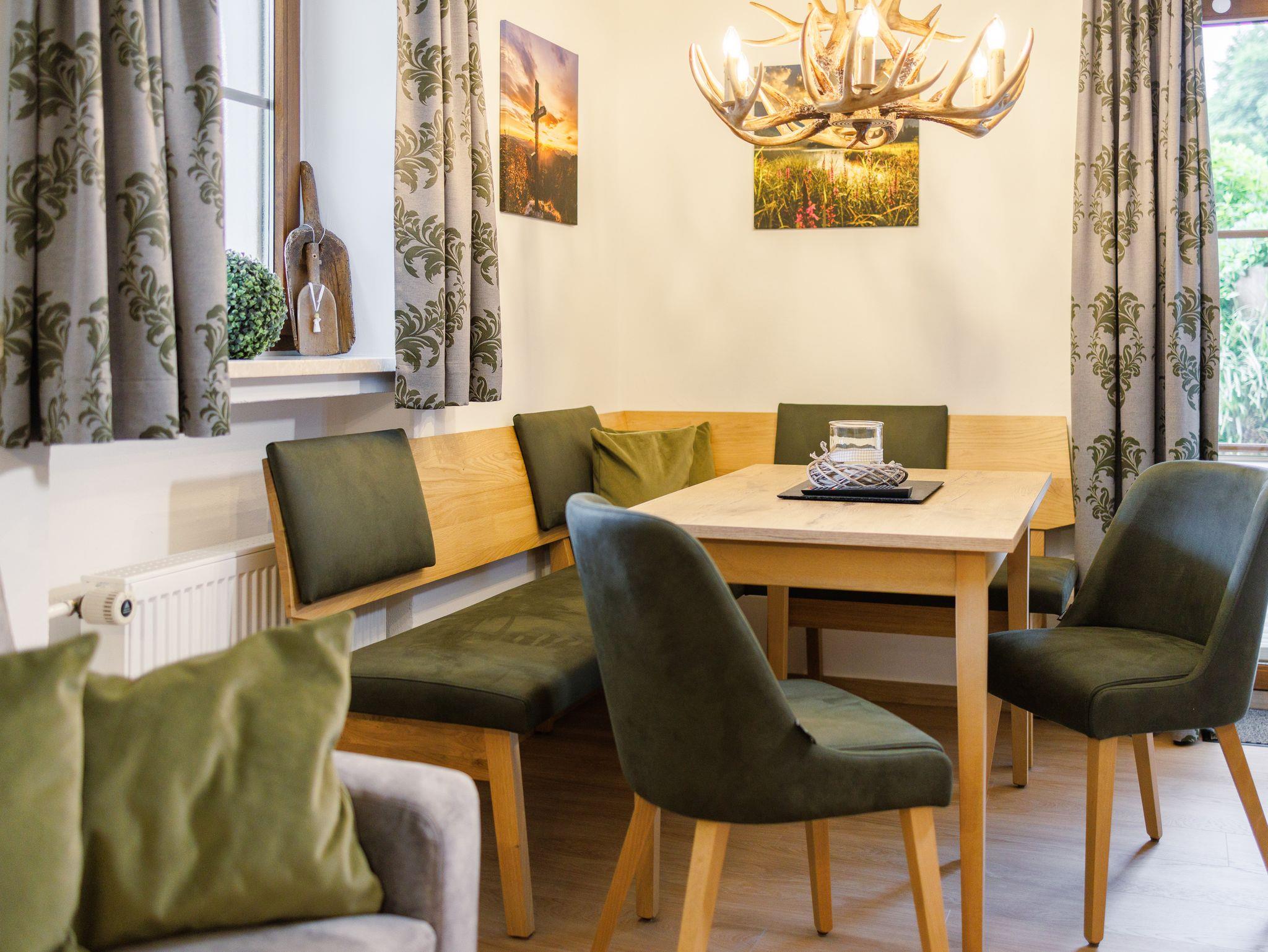 Die 55 qm große Ferienwohnung im Zuhaus am Schwimmteich mit Südterrasse für maximal 4 Personen, verfügt über ein separates Schlafzimmer mit Doppelbett und einem Einzelbett, ein Wohn-/Schlafzimmer mit Schlafsofa sowie einem Bad mit Dusche/WC. Gerne kann auch im Schlafzimmer ein Kinderreisebett aufgestellt werden. Die hochwertige Küche ist mit Geschirrspüler, Backofen, Ceranfeld und Kühlschrank inkl. Gefrierfach und den nötigen Kleingeräten ausgestattet.