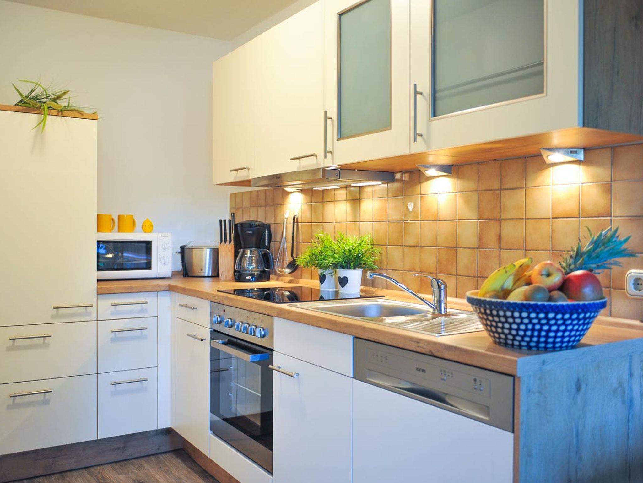 Diese komfortable und geschmackvoll eingerichtete 3-Sterne Wohnung befindet sich im ersten Obergeschoss in einem Haus mit insgesamt 8 Ferienwohnungen. Auf ca 80 qm Wohnfläche finden Sie alles was zu einem schönen Urlaub gehört. Ihre Wohnung verfügt über einen geschmackvoll eingerichteten Wohnraum für gemütliche Abende, vom Wohnzimmer aus haben Sie einen direkten Zugang zu Ihrem Balkon, eine Wohnküche mit einer Küchenzeile und Essraum, ein separates Eltern-Schlafzimmer mit einem Doppelbett (180 x 200cm) und einem 3-türigen Kleiderschrank, auch vom Schlafzimmer aus haben Sie einen direkten Zugang zu Ihrem Balkon, ein zweites Schlafzimmer mit einem Stockbett (90 x 200cm) und ein Badezimmer mit einem Badewanne mit Dusche und WC sowie einen Balkon mit Süd-Westblick, komfortablen Gartenmöbeln und Sonnenschirm.